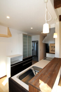 - 建具は引き戸がメイン、室内が広く使えるように工夫