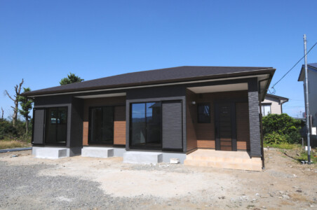 外観は黒と木目をいかしたスタイリッシュな印象の平屋のお家です。