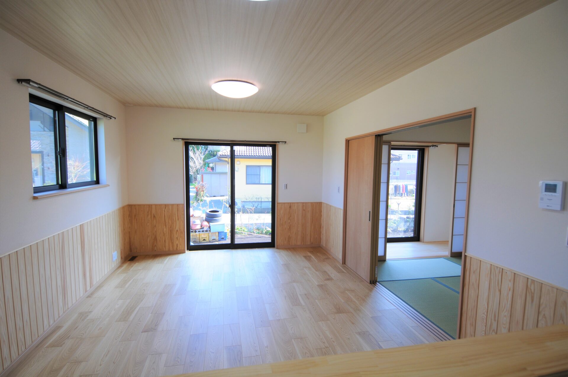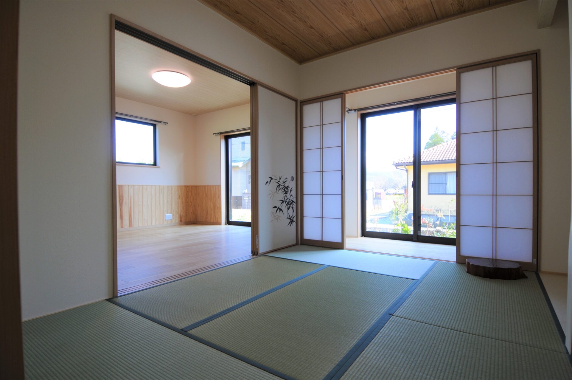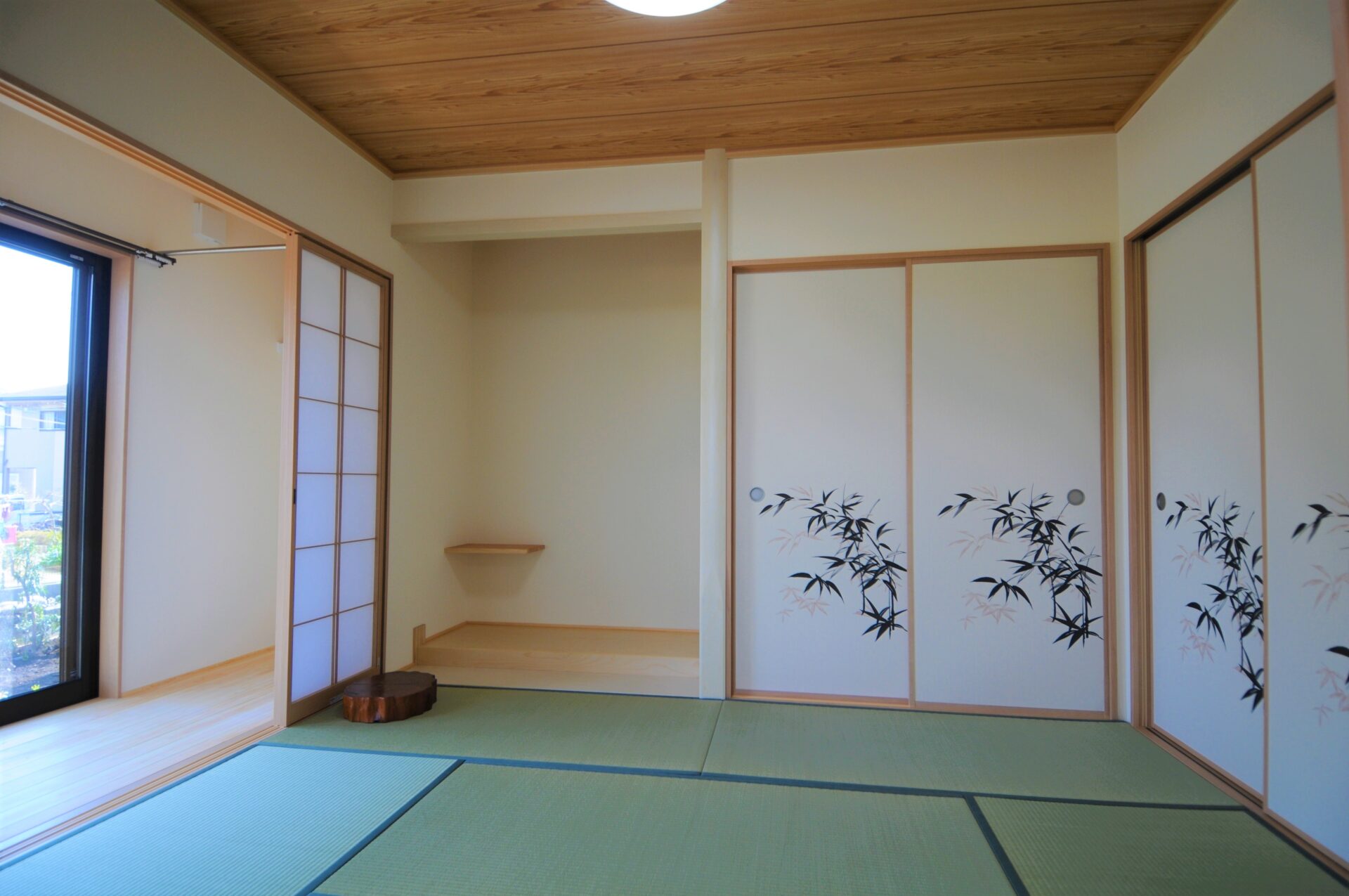 和室は、お孫さんが遊びに来ても余裕で寝泊まりできる広さで、リビングとも繋がる仕様です。