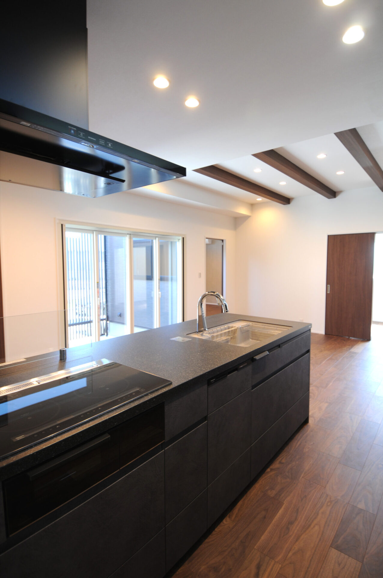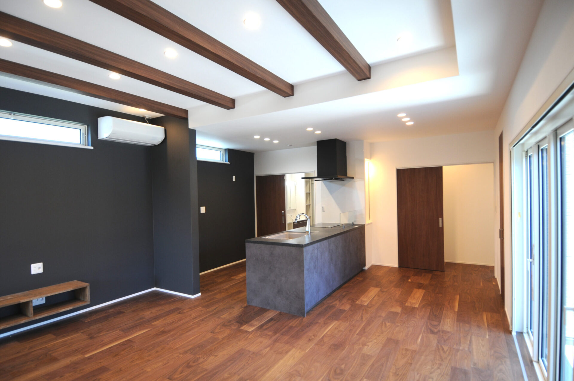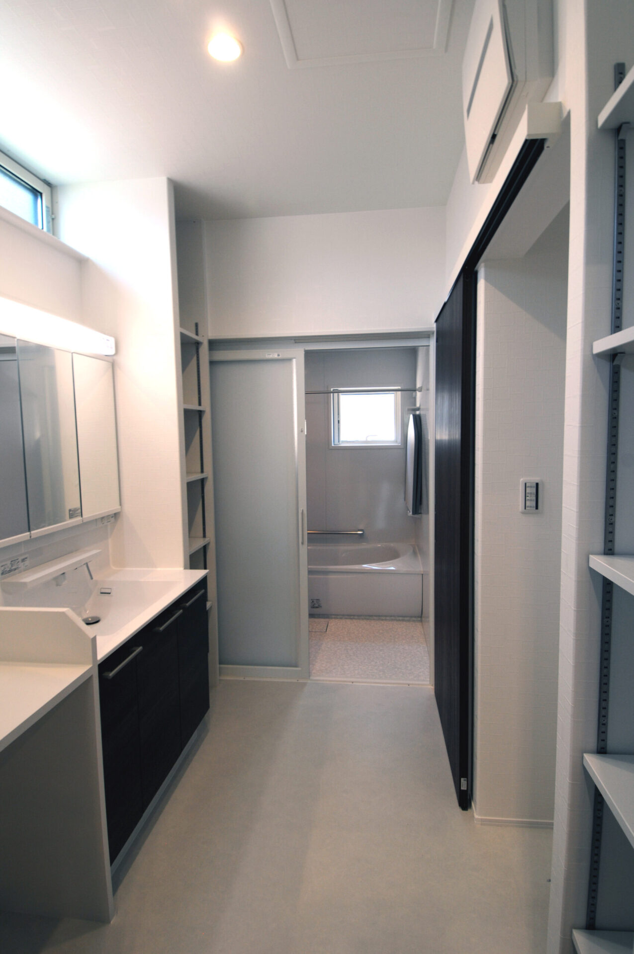 リビングを中心とした3LDKで、親と一緒に暮らしやすい間取り。キッチン→洗面・お風呂などは、ぐるりと回れる家事ラク動線。外からの目が気にならない、目隠し付きのインナーテラスや、設置位置に配慮した窓も明るさ十分のお家です。