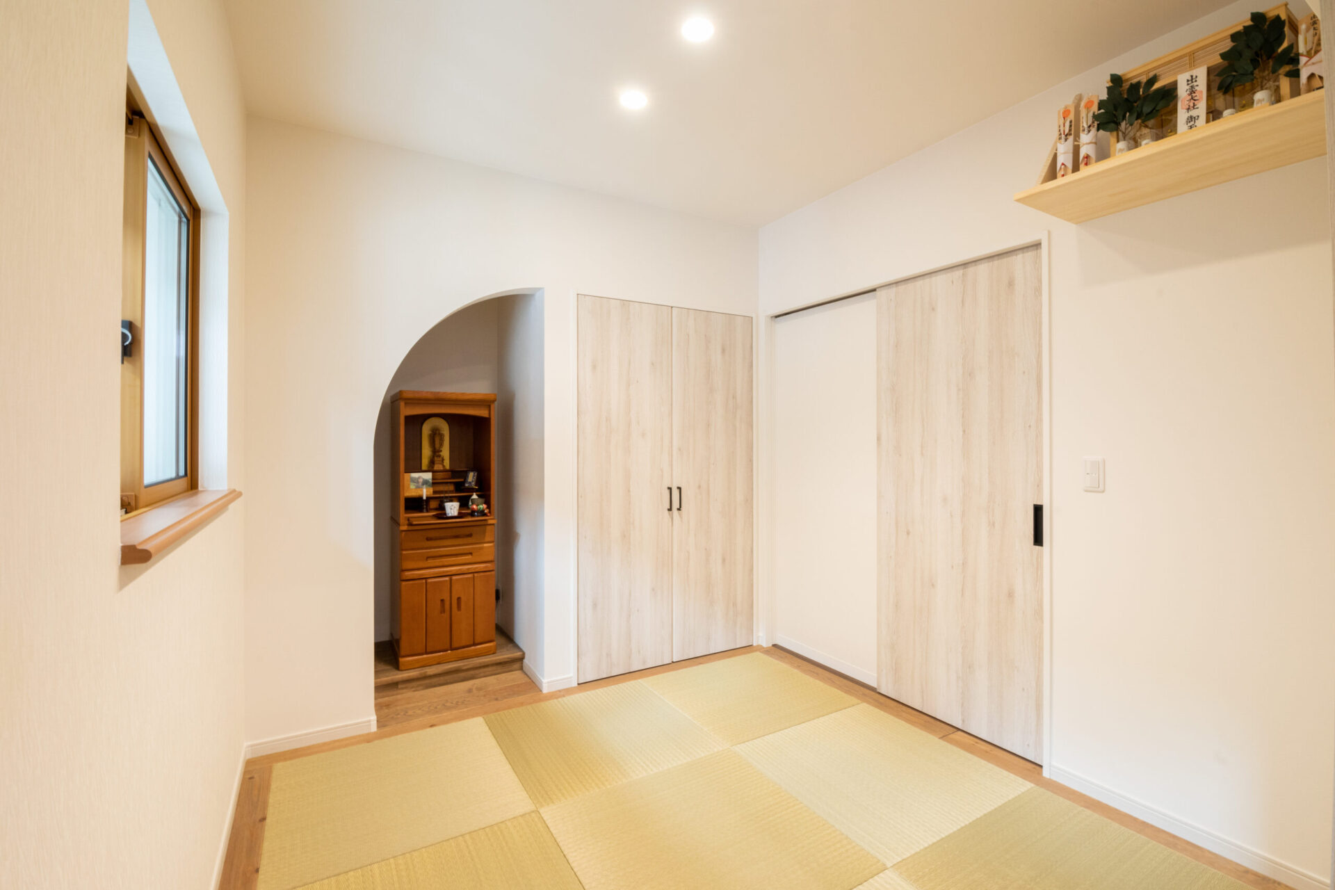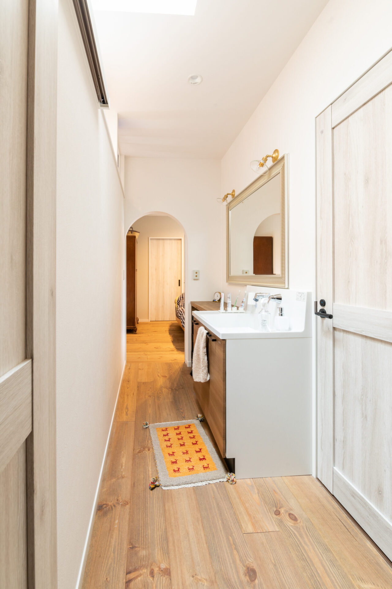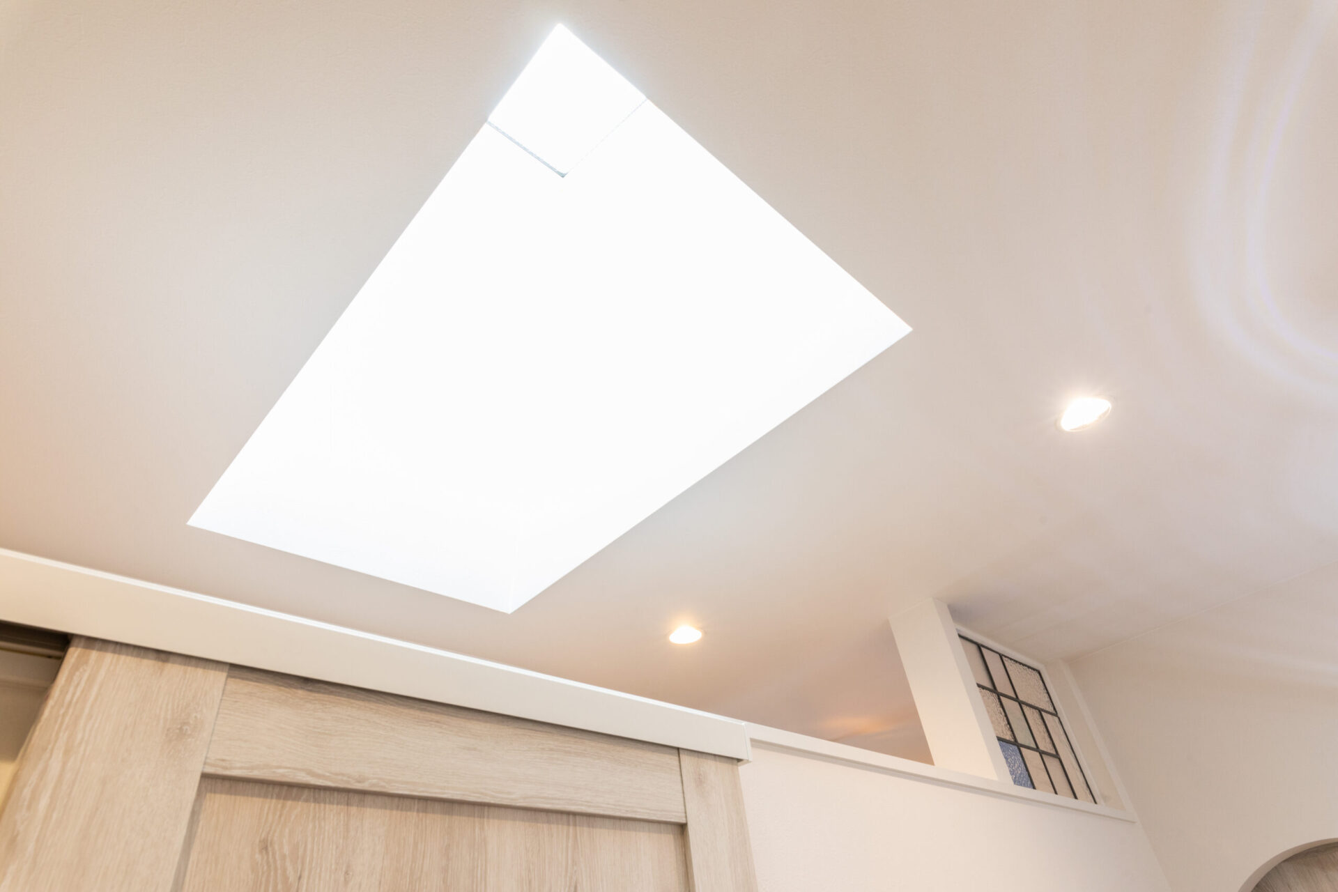 - 暗くなりがちな廊下を明るく演出するための天窓設置