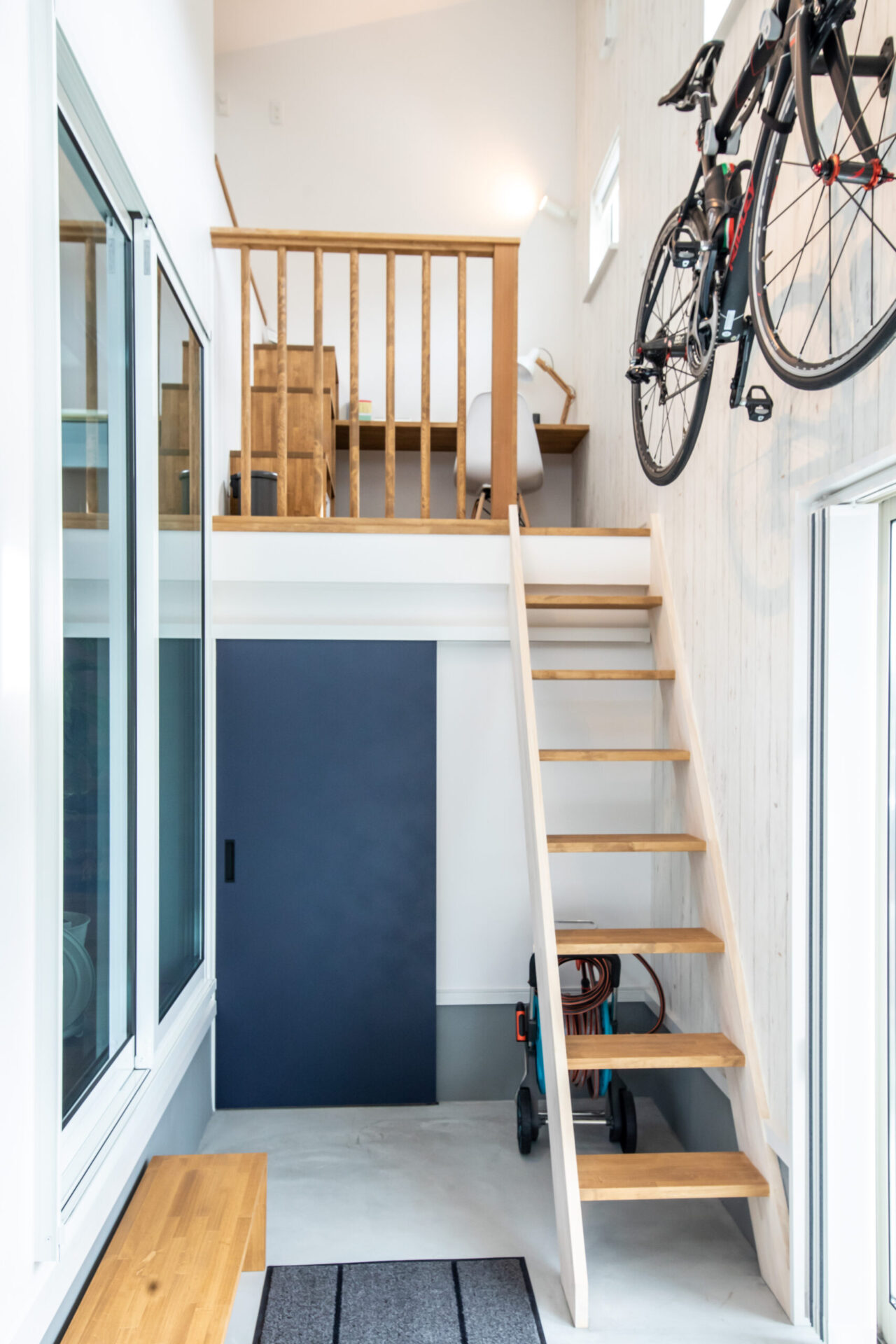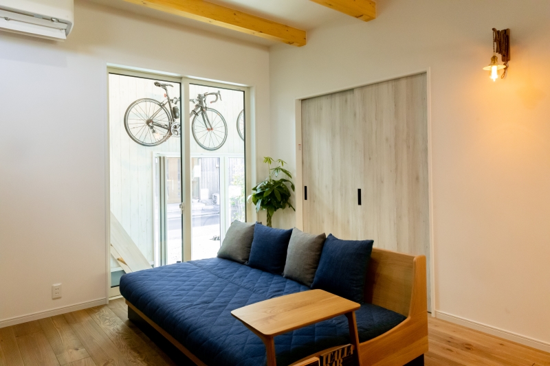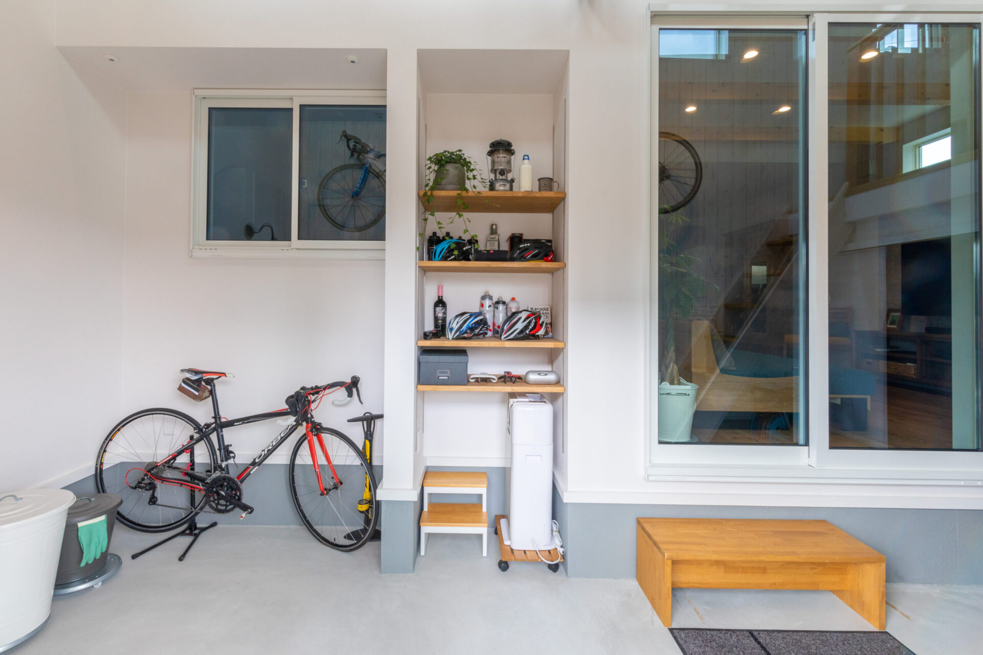 - 趣味のロードバイクを飾れるガレージ&ロードバイクが眺めることが出来るリビング