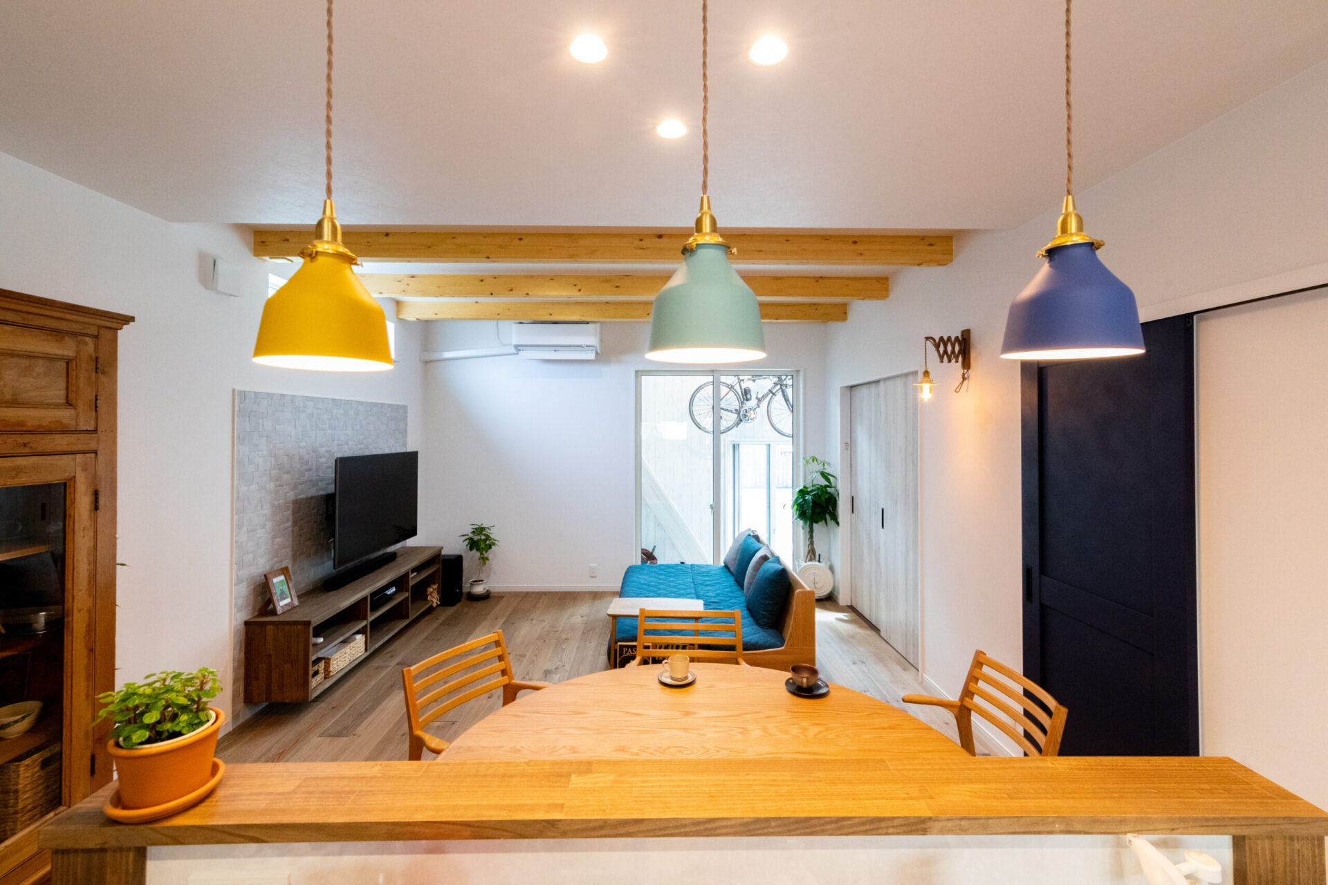 ロードバイクガレージ&ロフトなど、仕事も趣味も生活動線も全て納得いくまで何度も打ち合わせを行い、北欧風の内装や収納など細部までこだわって作り上げた3LDKの平屋です。