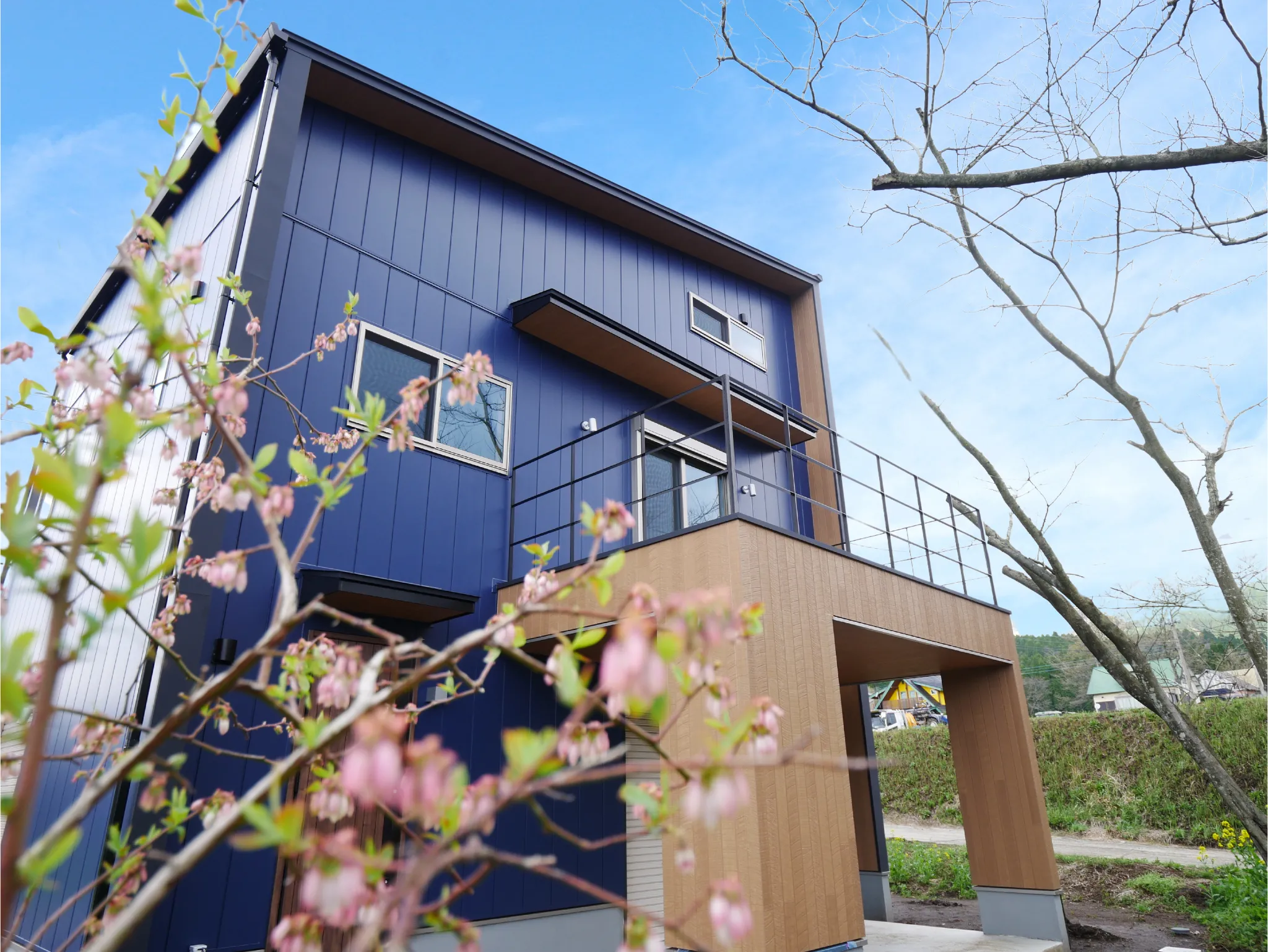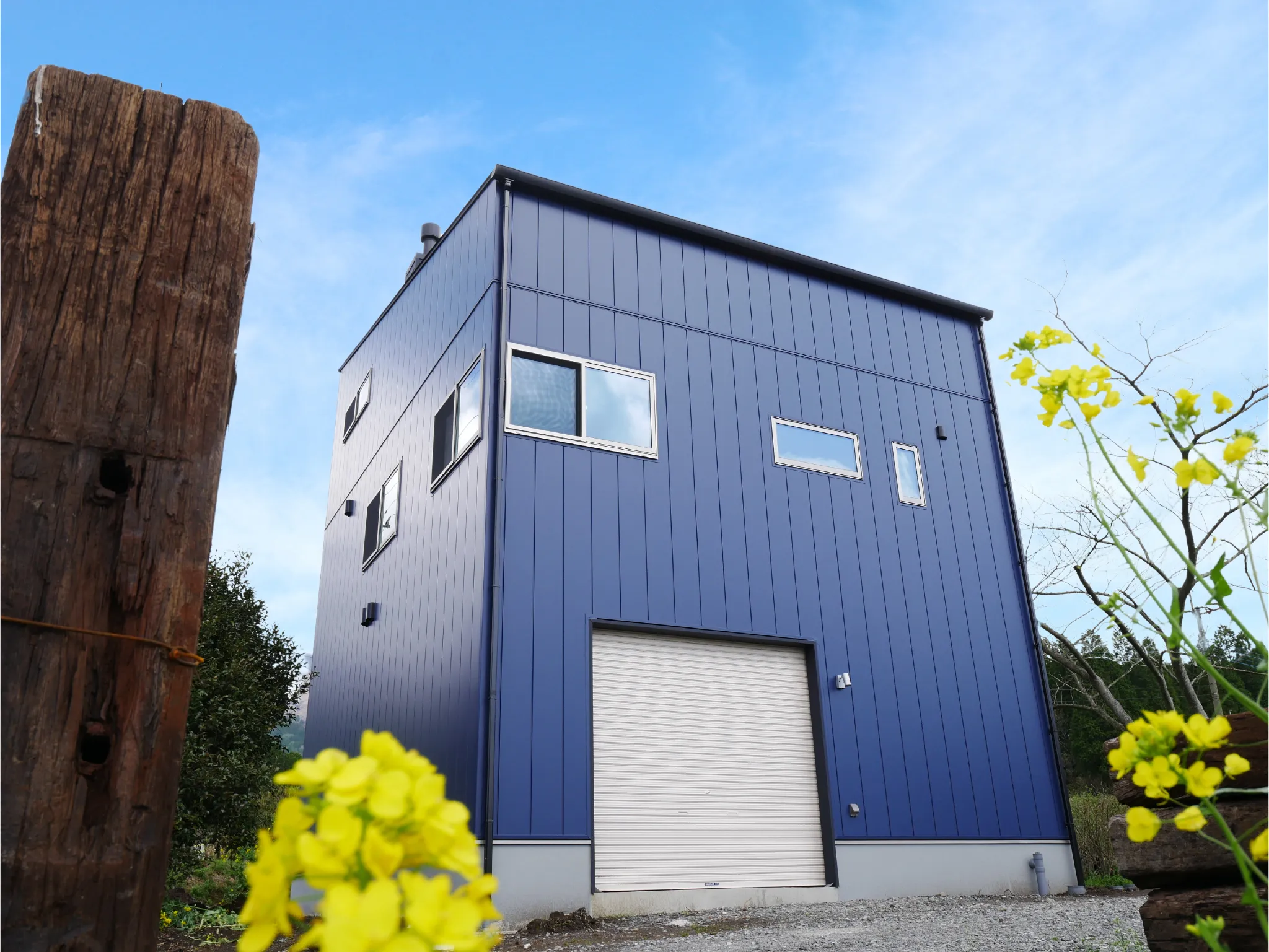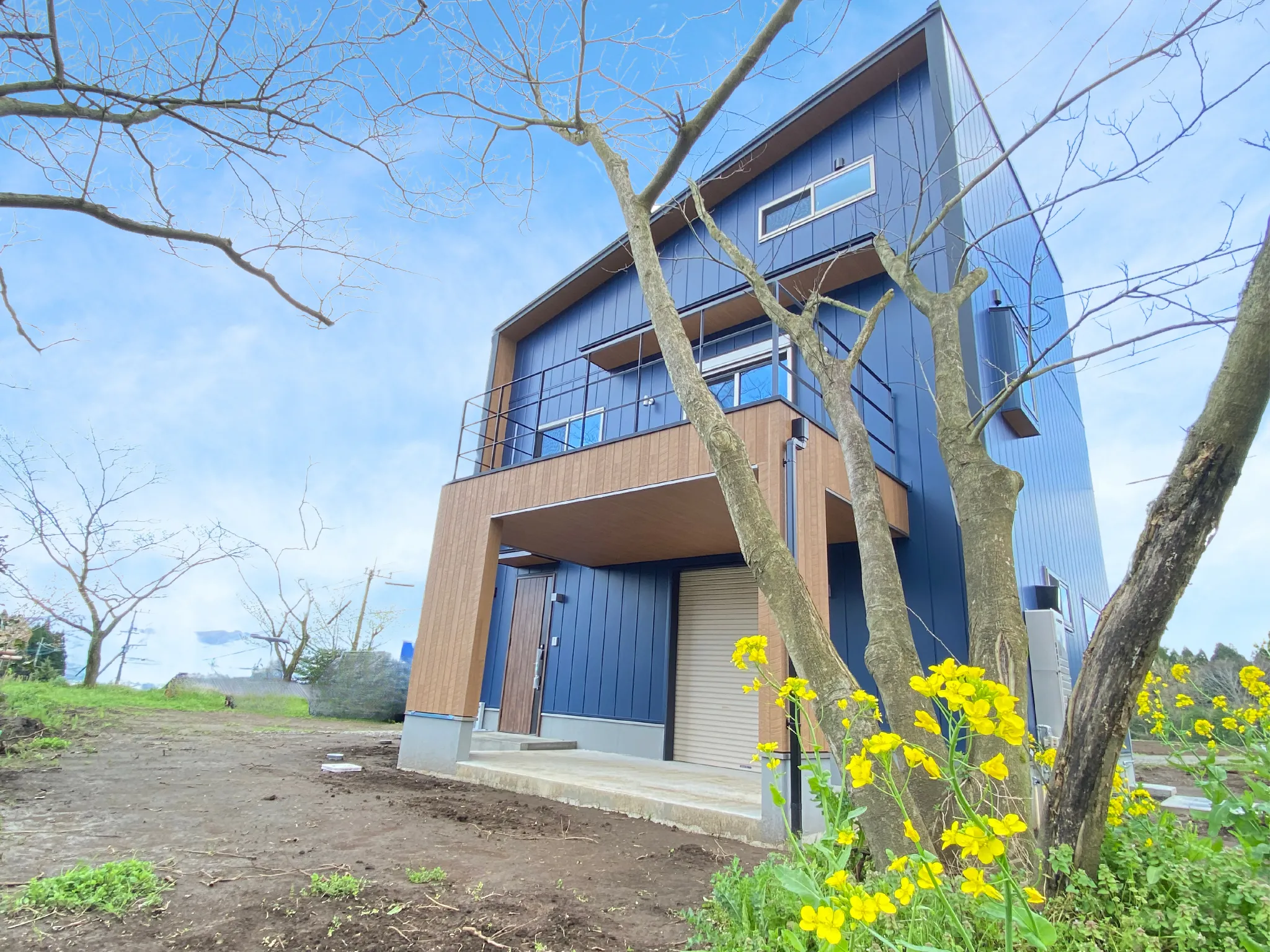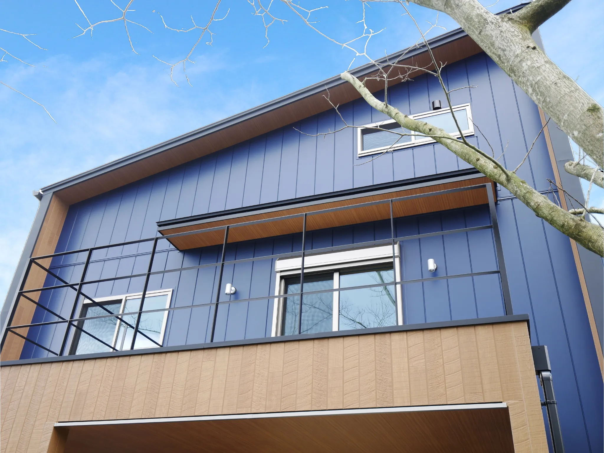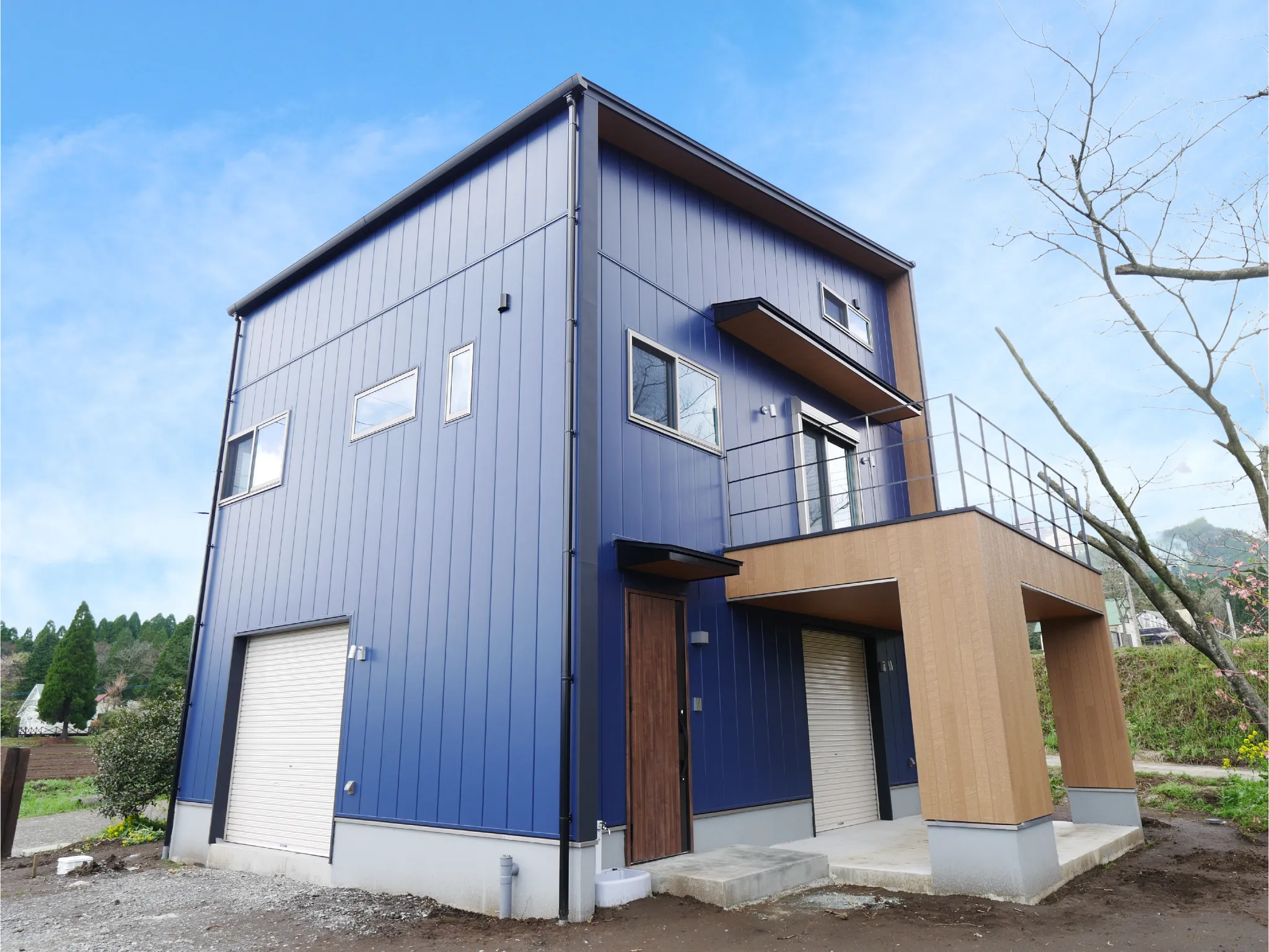 - 屋根と外壁は、スタイリッシュでおしゃれなネイビーのガルバリウム鋼板