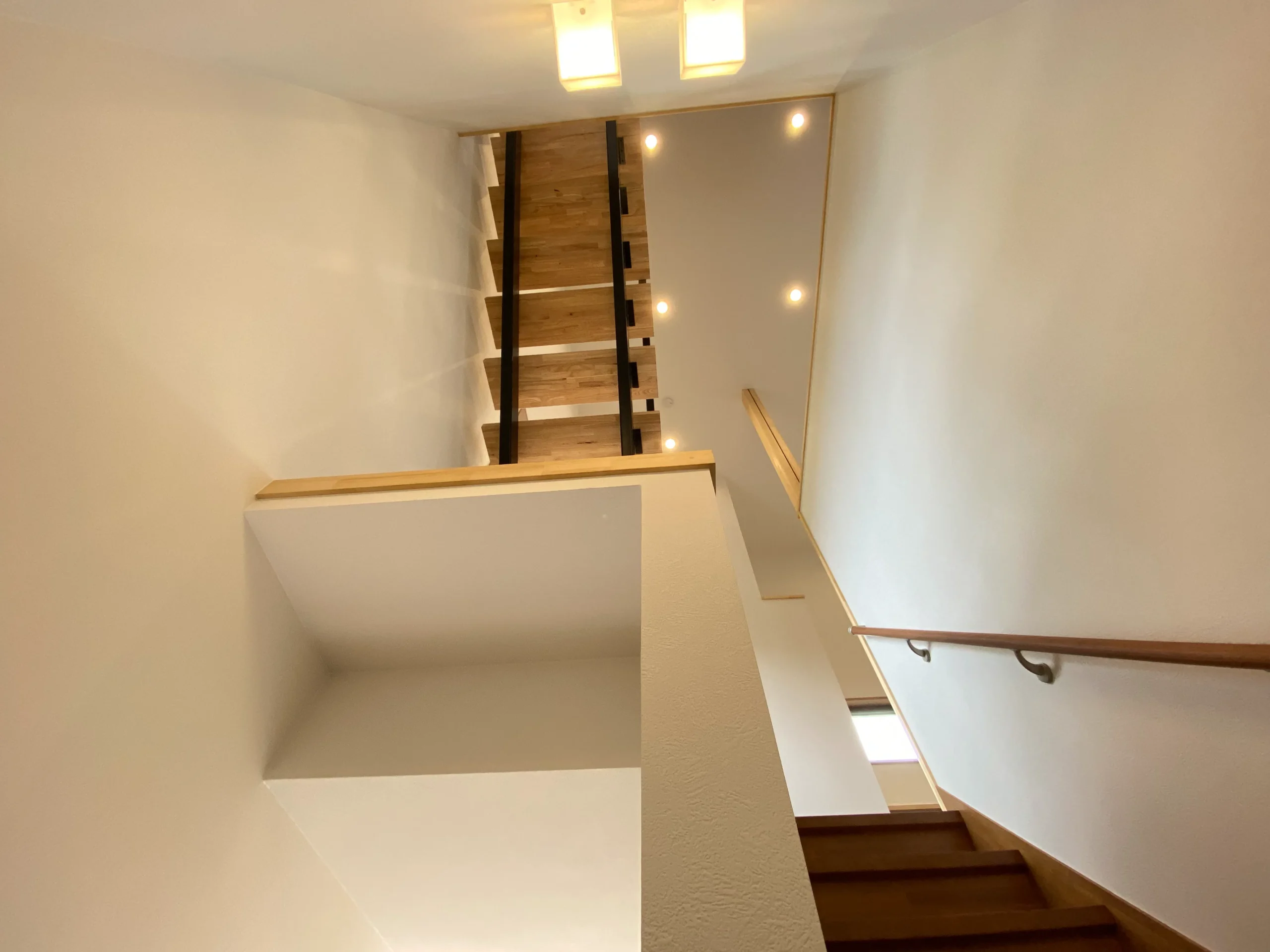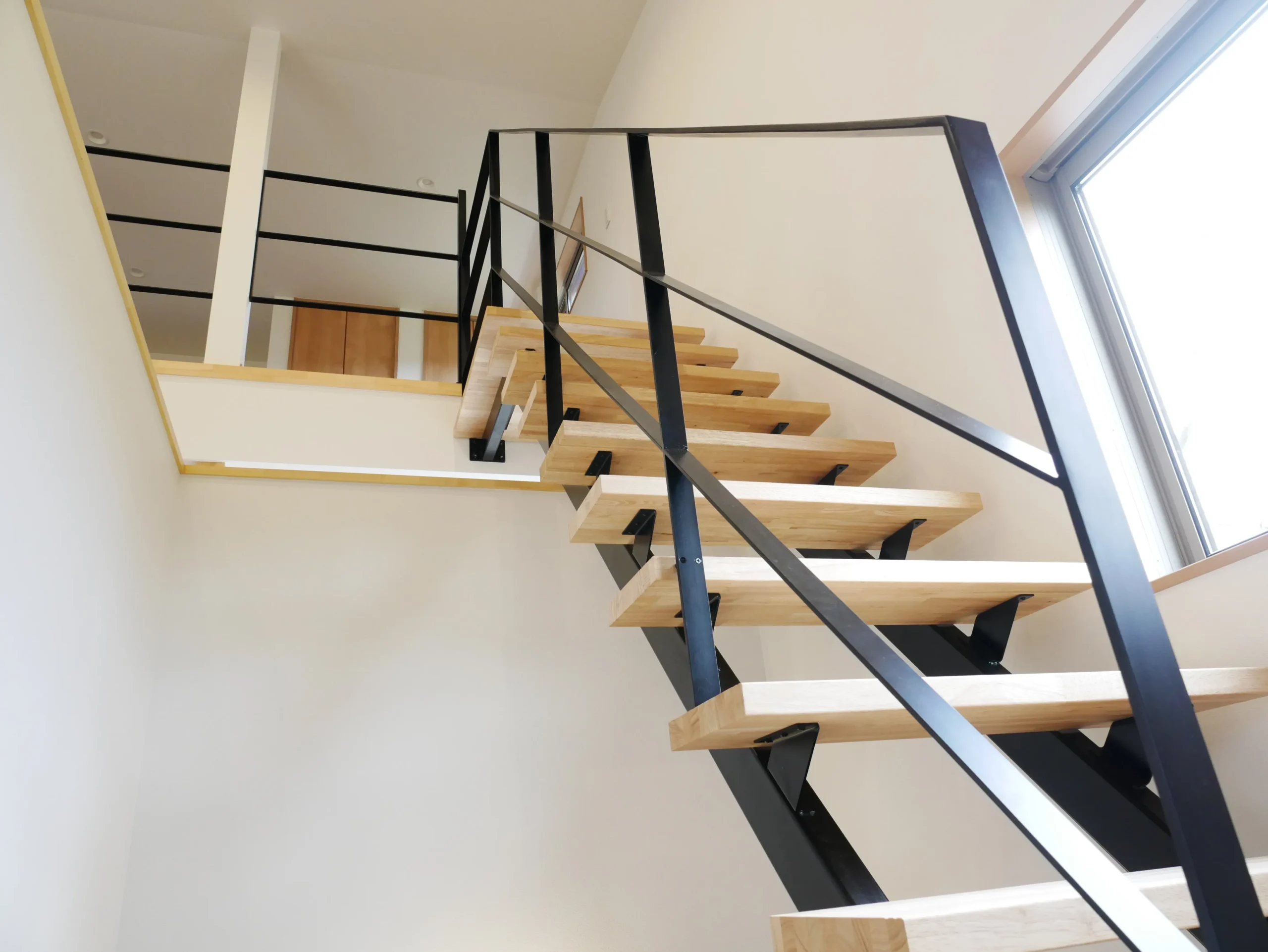 - リビングから屋根裏部屋への階段はスタイリッシュな平鉄アイアンを採用