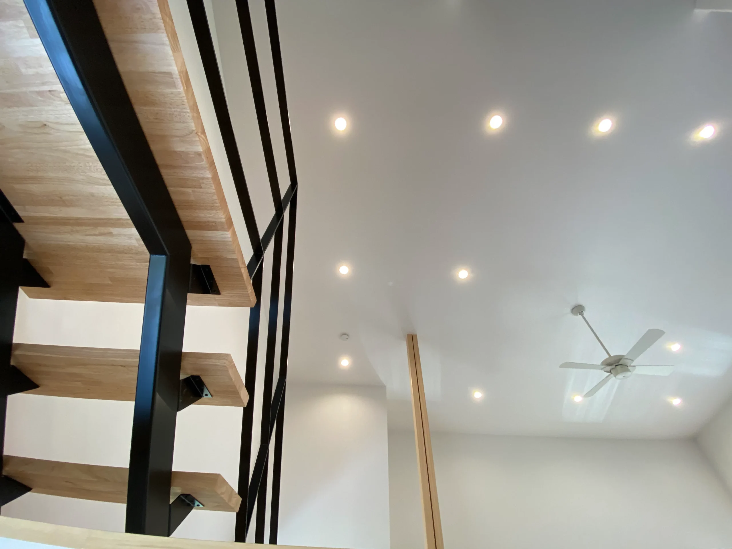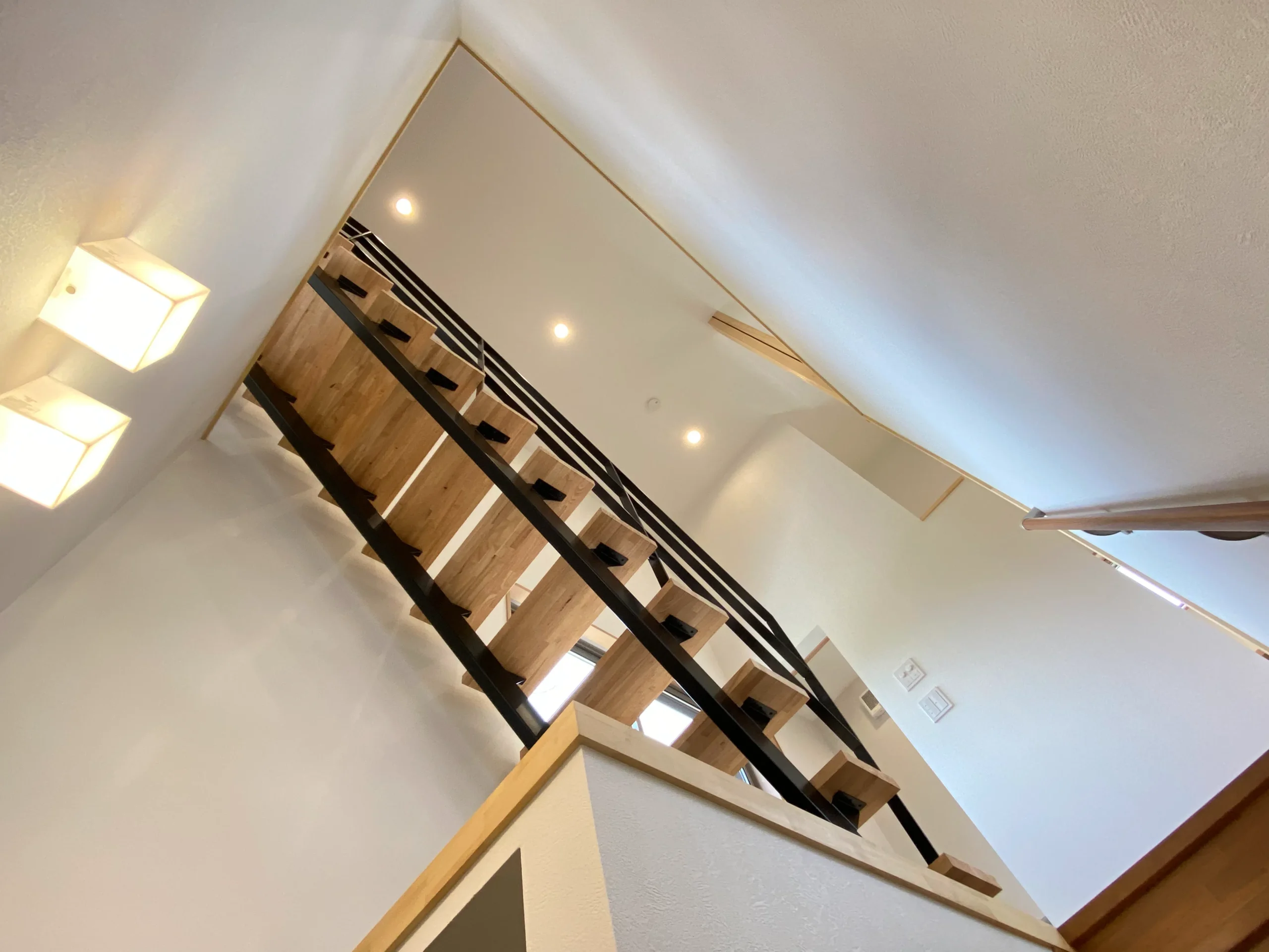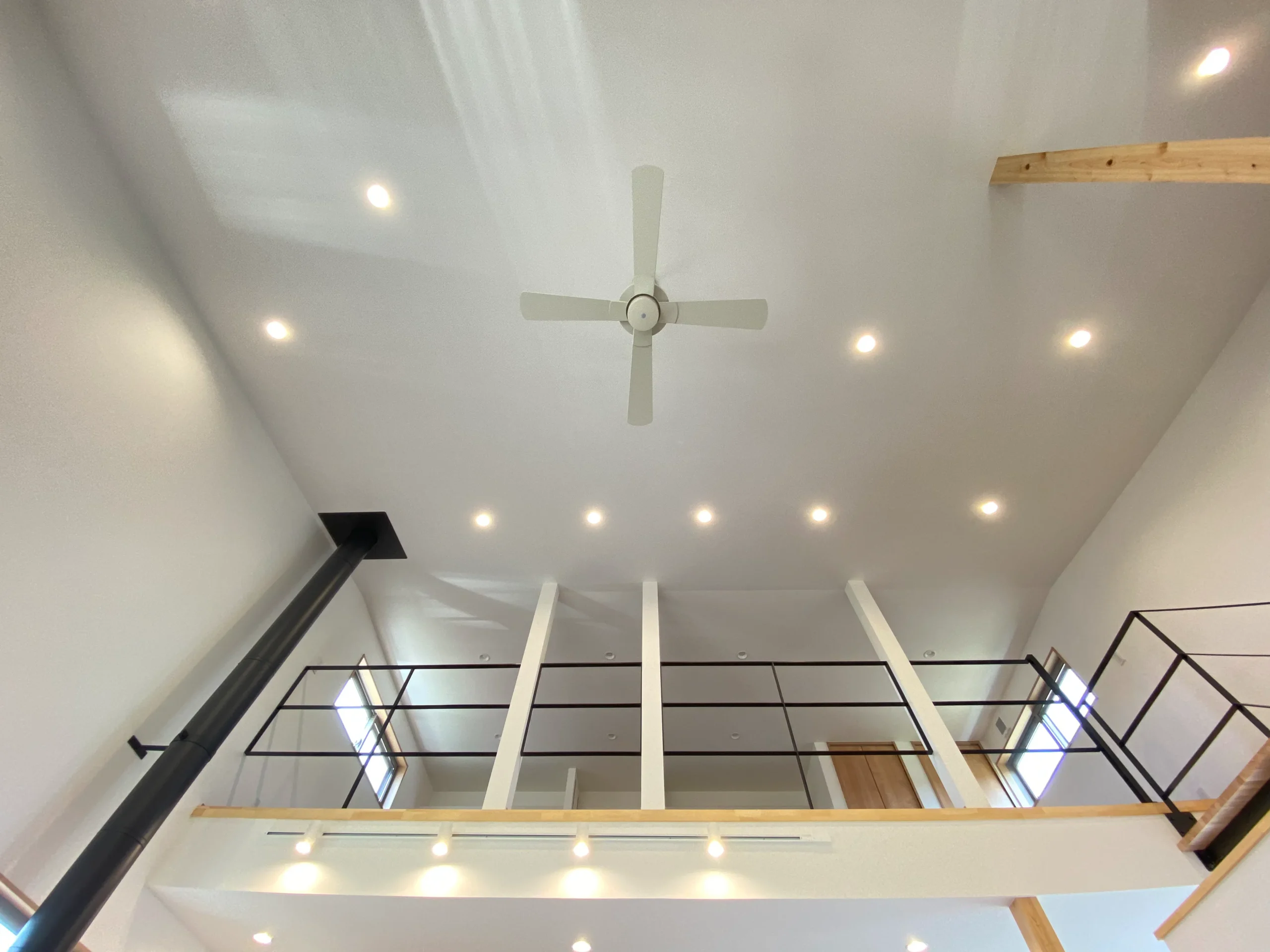 2階リビングから屋根裏ロフトへつながるアイアン手すりの階段もスタイリッシュに仕上がりました。