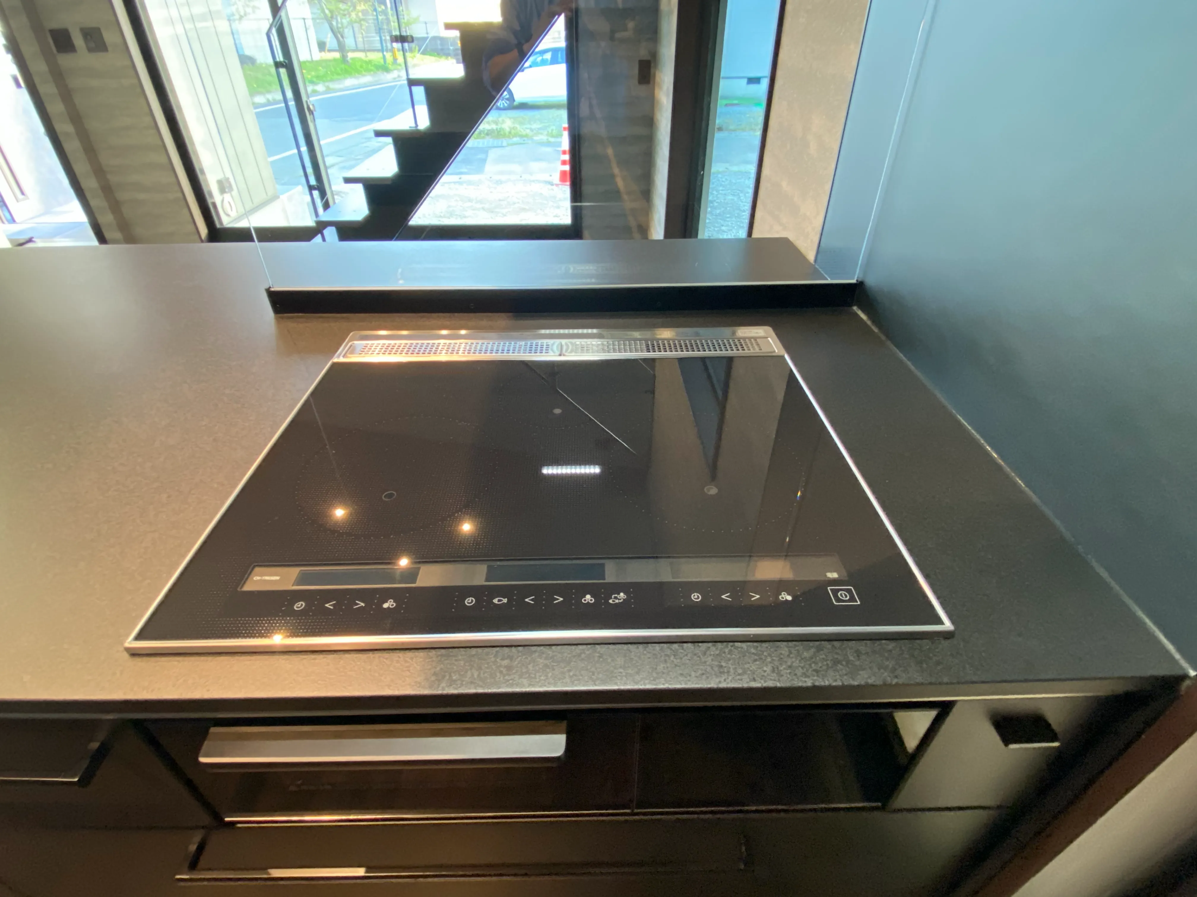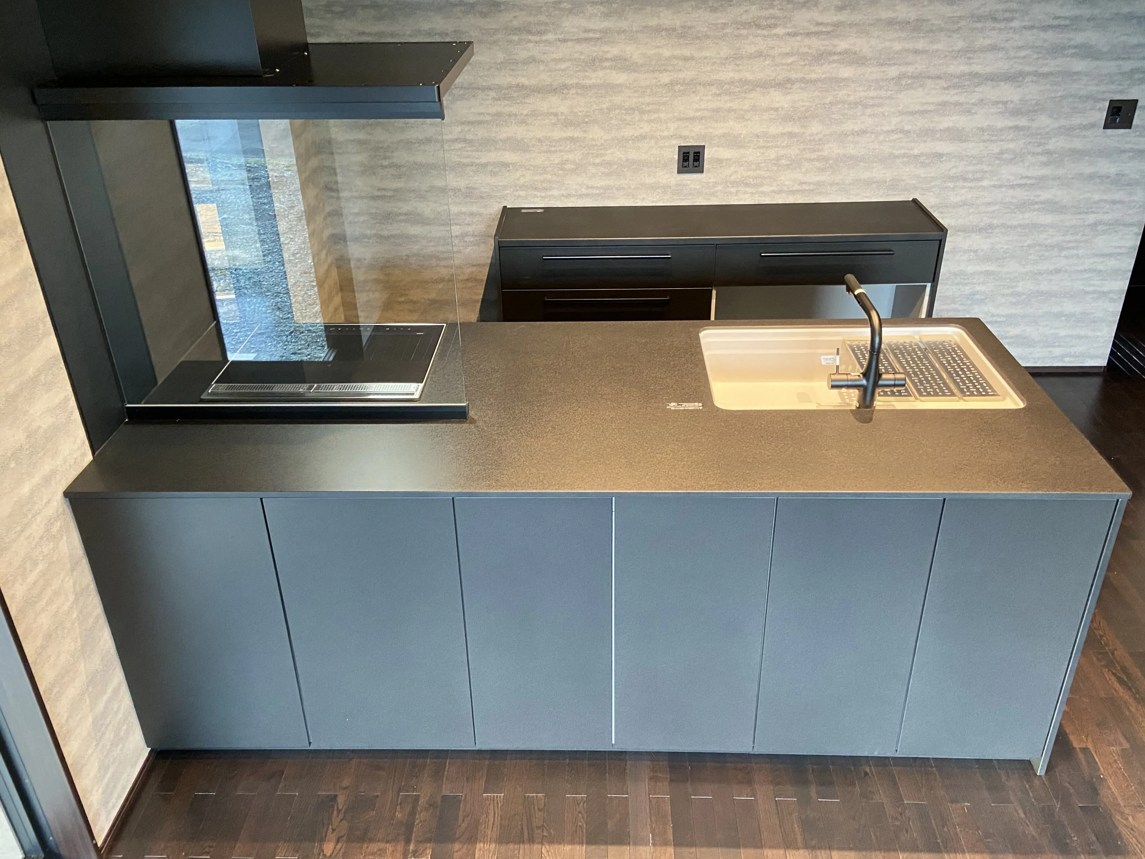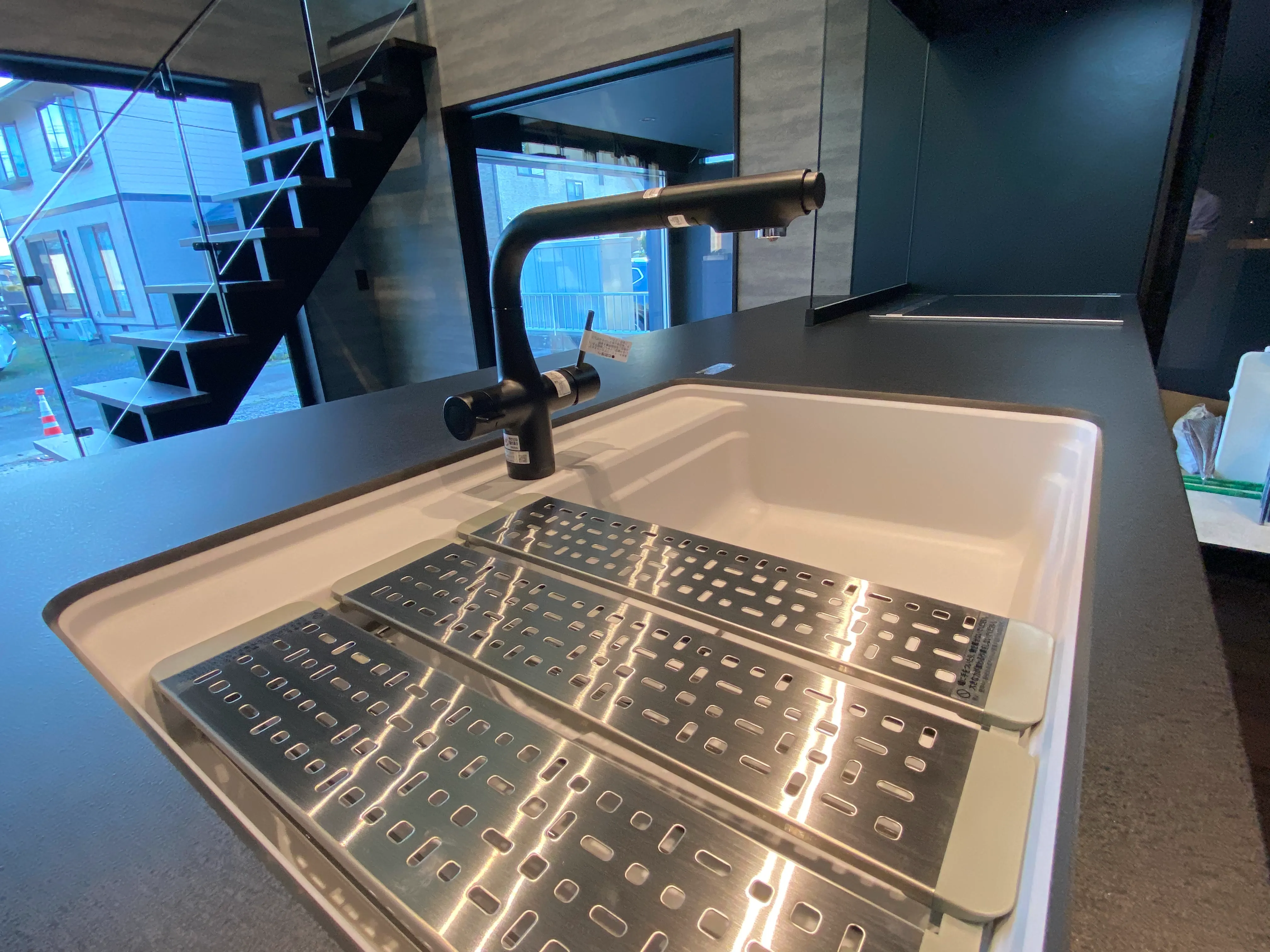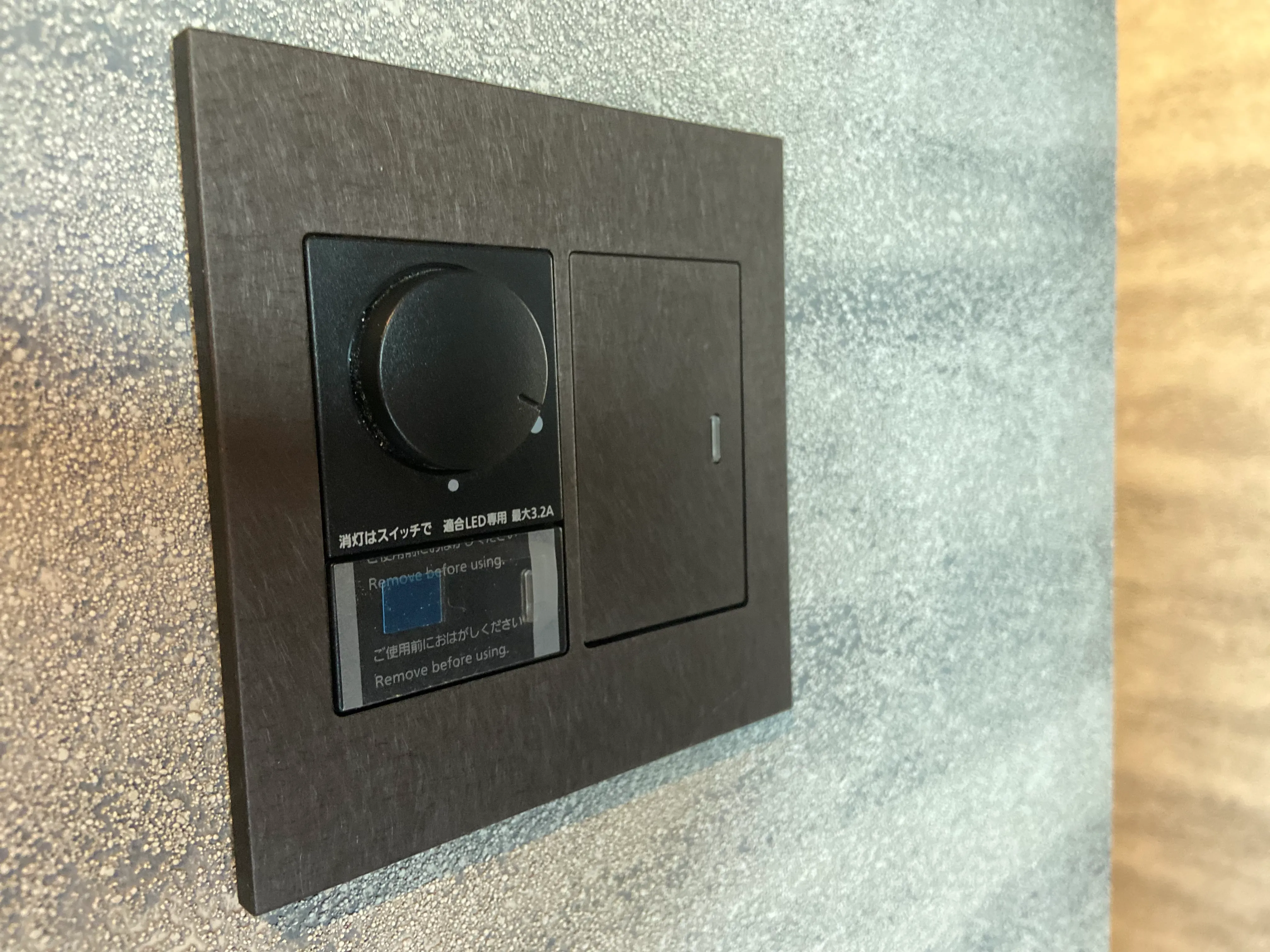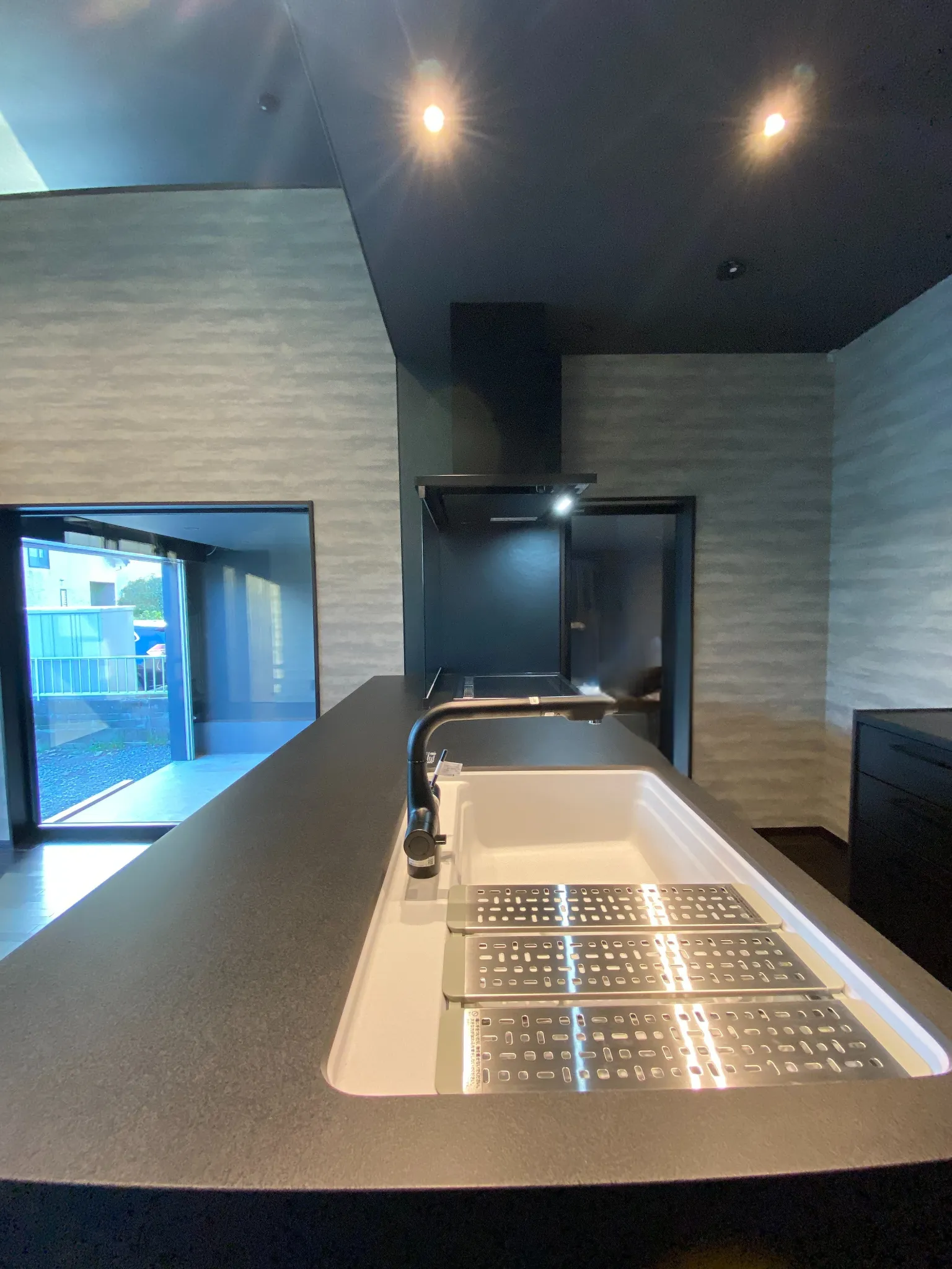 キッチンやスイッチ&コンセントプレートもブラック基調で統一されたスタイリッシュデザインを採用しています。