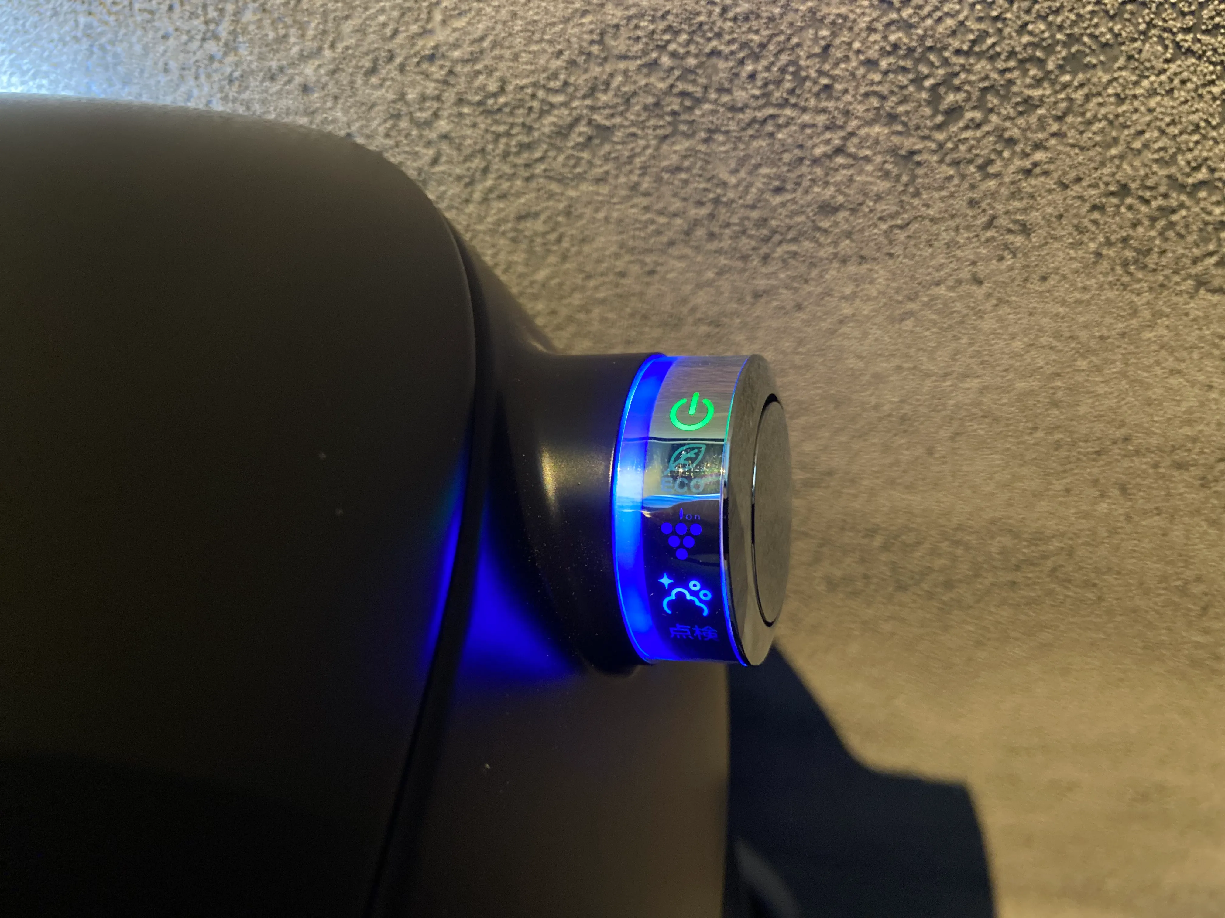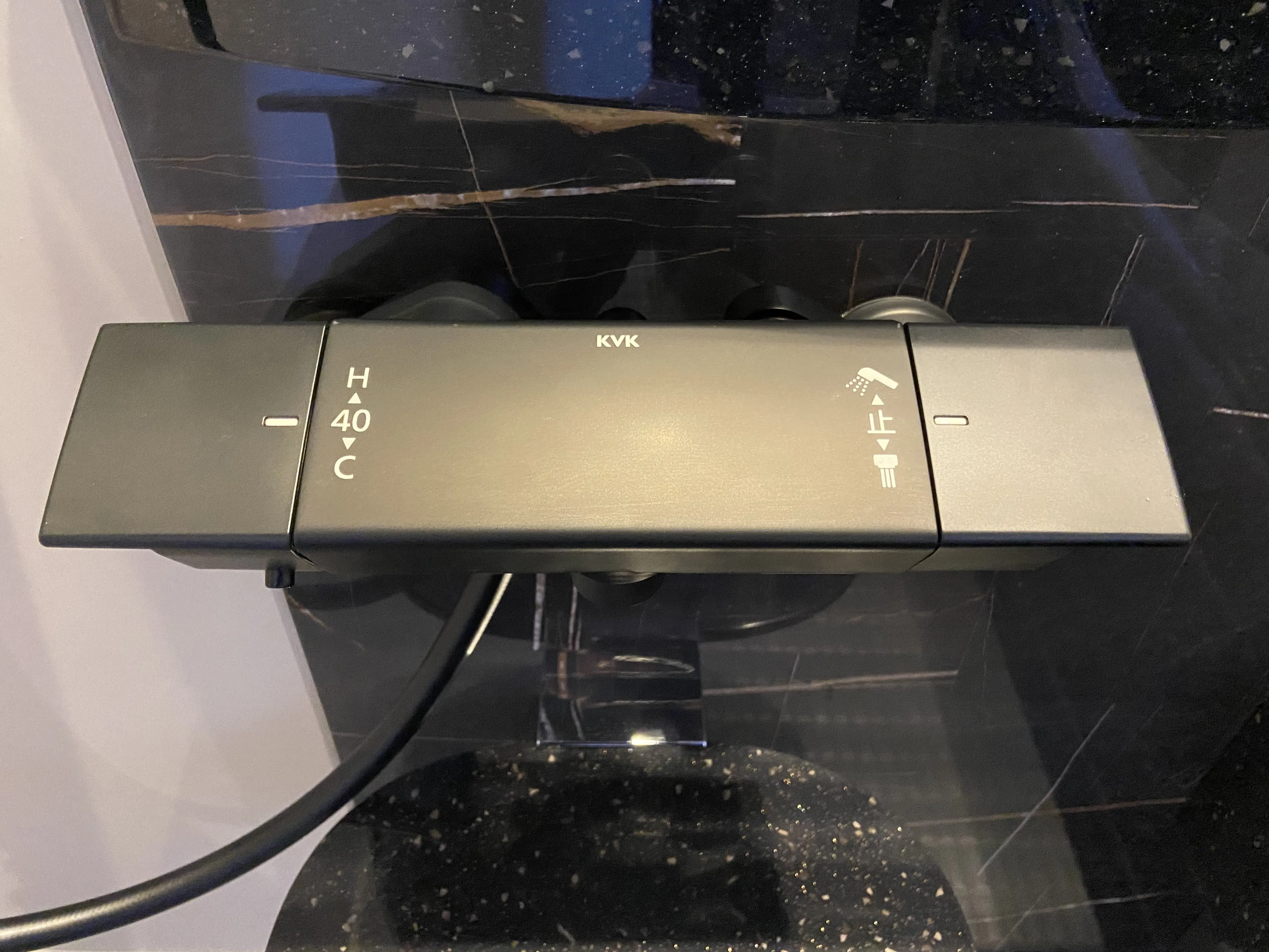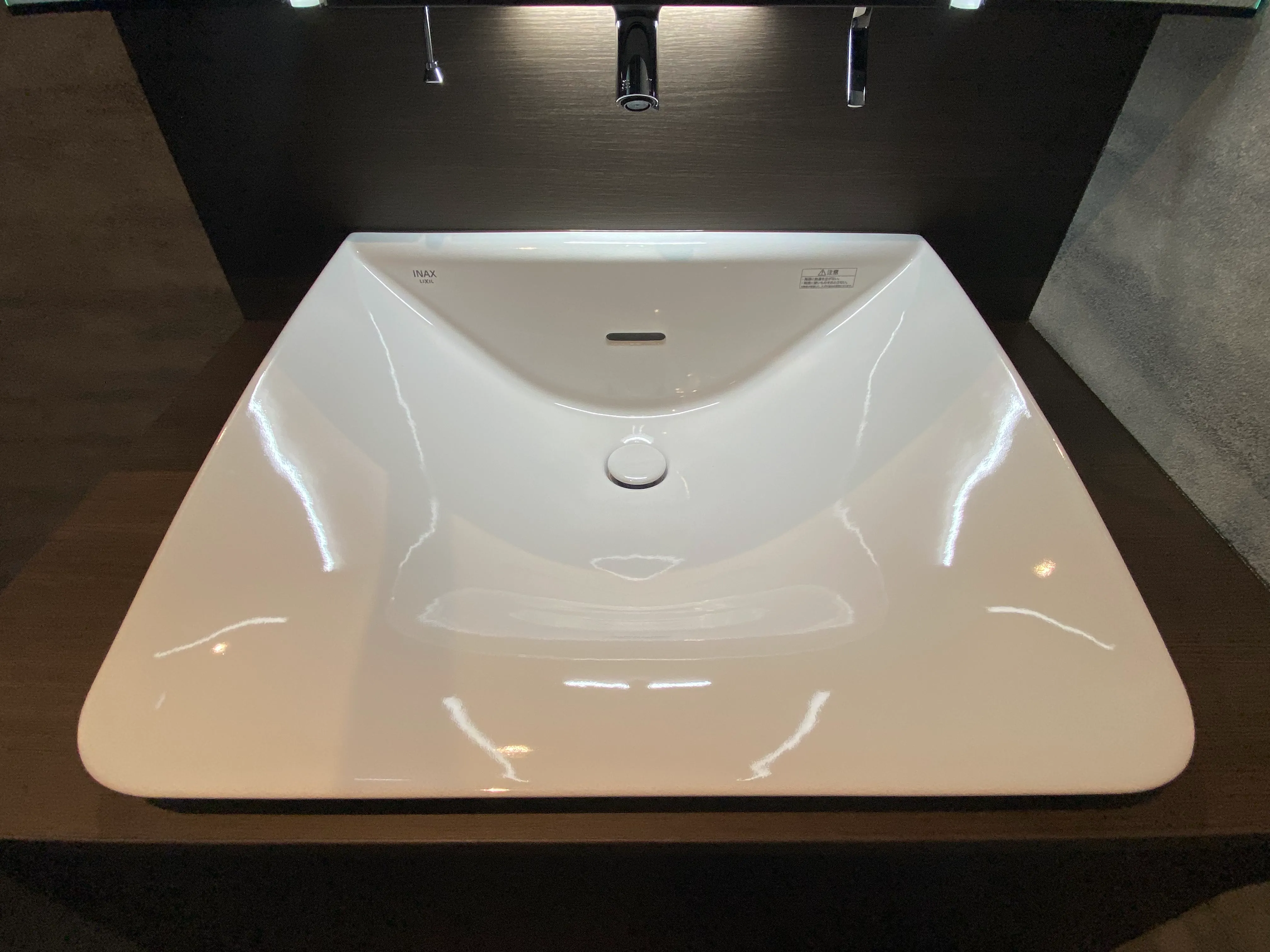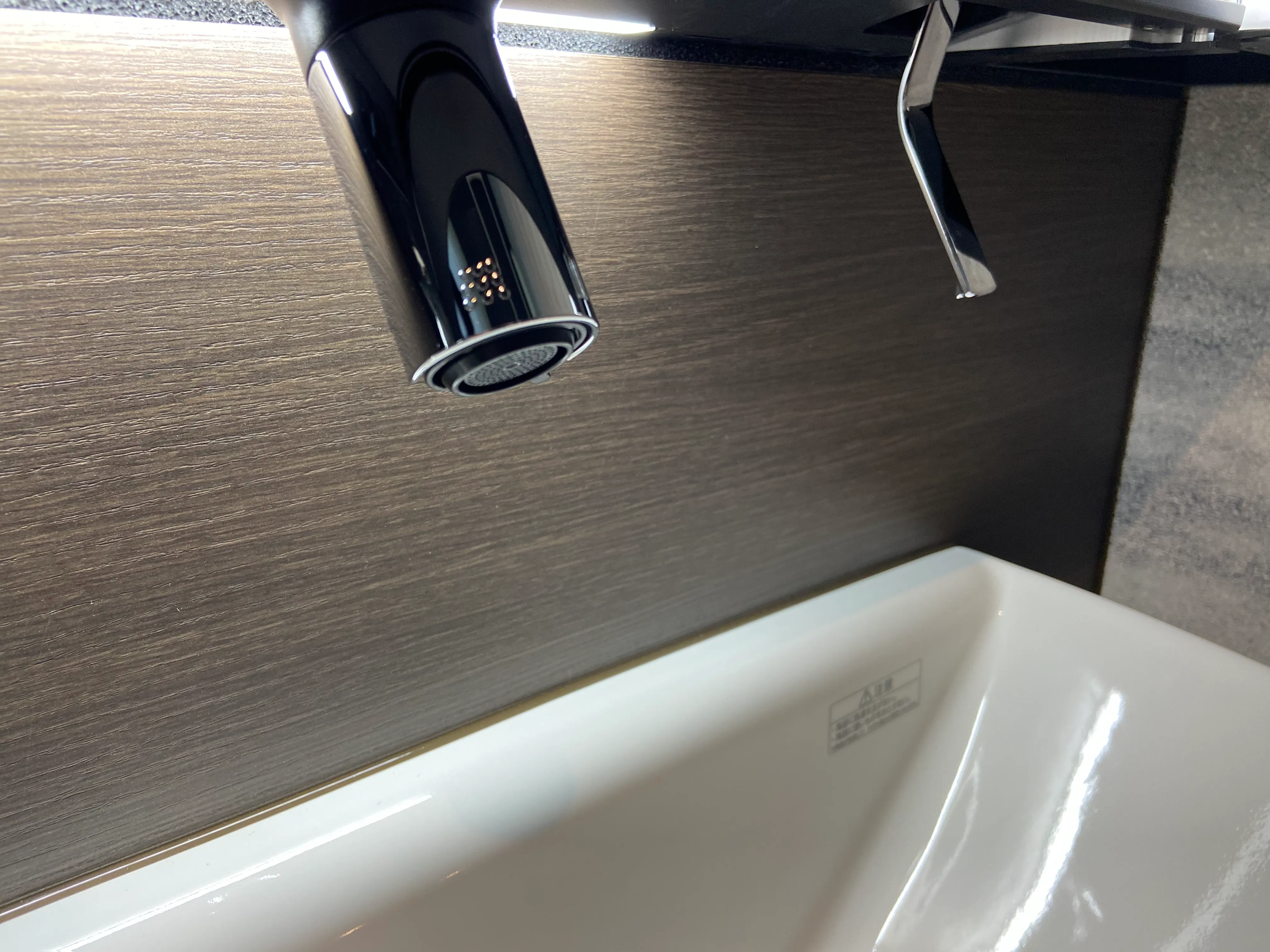 水回りもブラック基調で統一することで、引き締まった印象になります。トイレットボールのブルーLEDがスタイリッシュ感を演出。