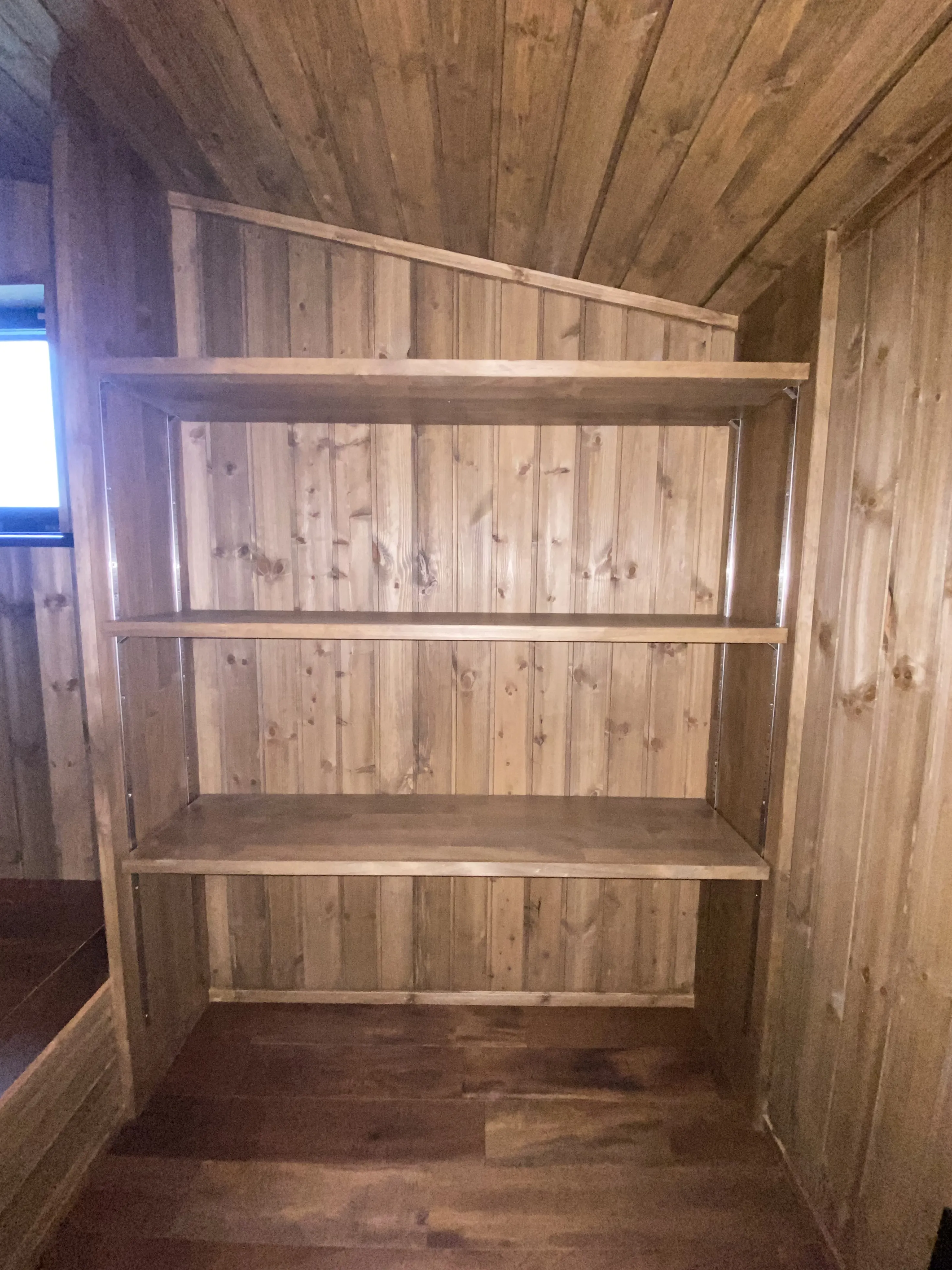12帖の広々ロフトには、大容量の可動式収納棚を設置。また収納だけではなく寝室としても使えるマルチスペースです。