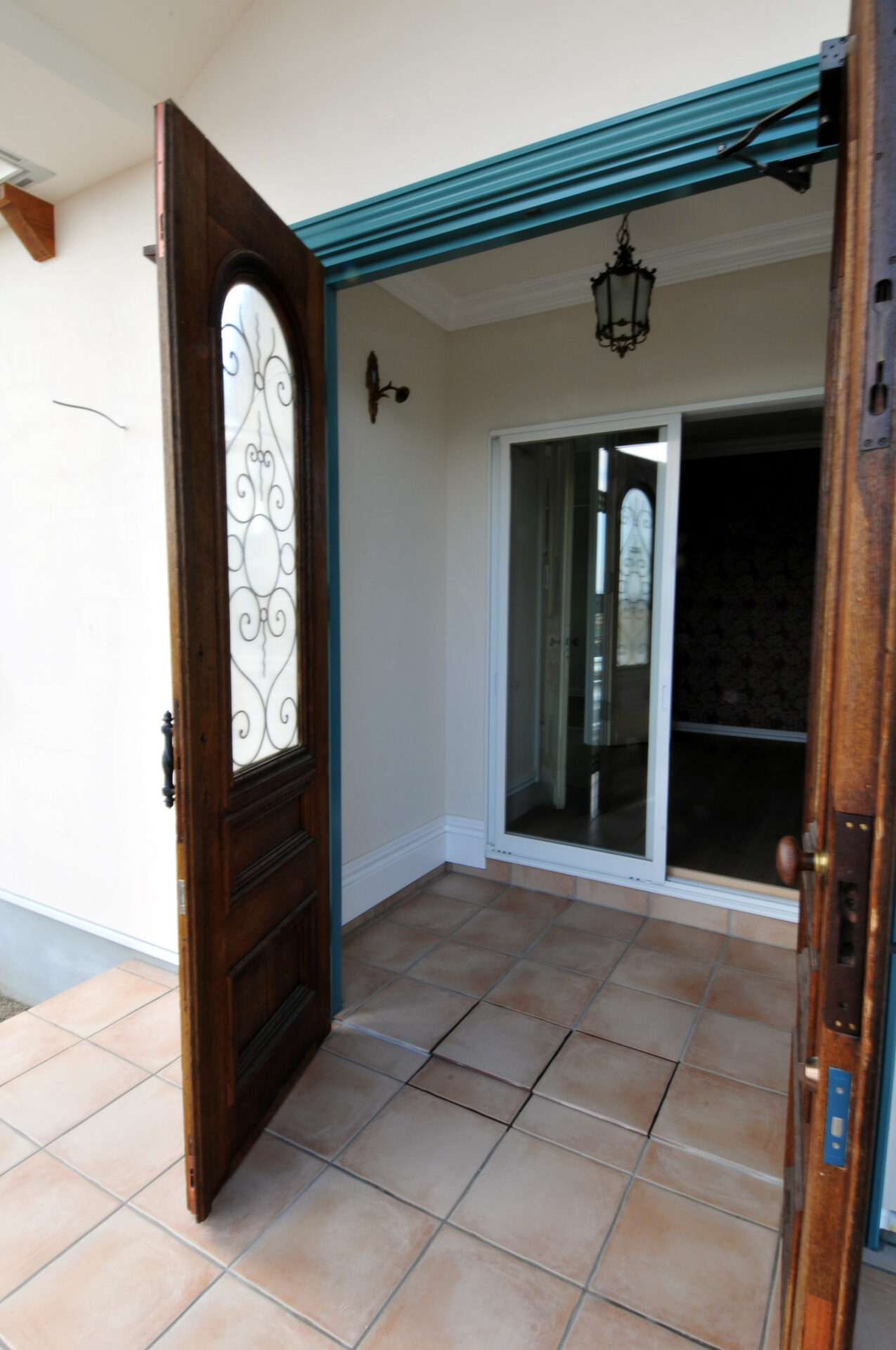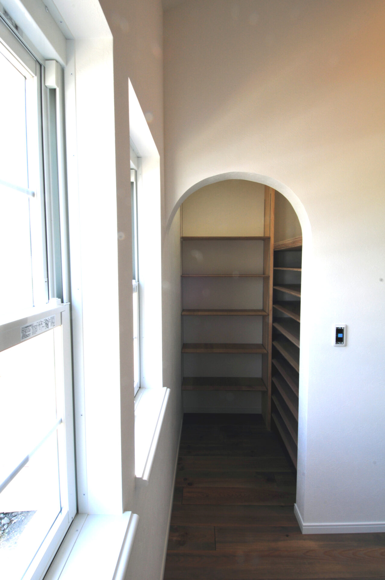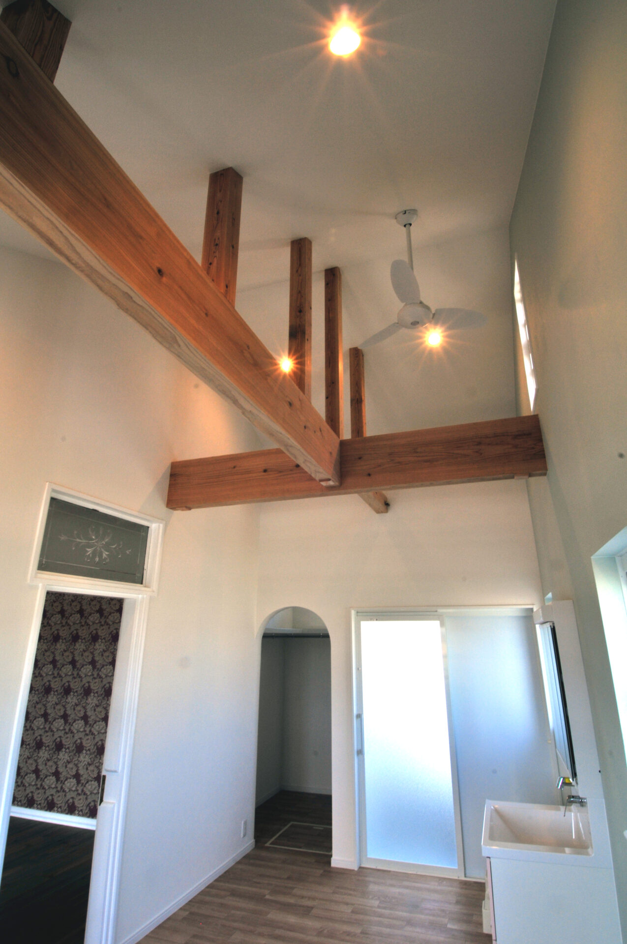 ドアや照明などに本物のアンティークを使用した教会のような住まいです。