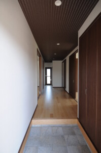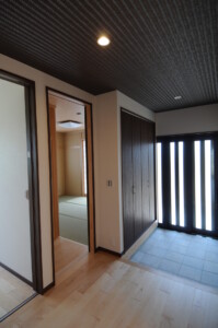 約20帖のLDKは高天井で開放感抜群。水回りの導線も使いやすくコンパクトにしました。