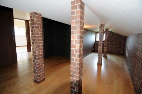 たくさんの収納スペースを確保するために一部小屋裏を11帖の収納スペースに活用、大容量のシューズクロークも設置。