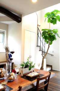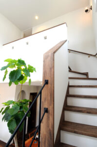 窯変洋瓦に外壁・内部も塗り壁にし、無垢の床材を使用しました。