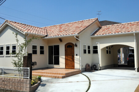 【熊本市北区梶尾町】素焼き瓦・ニッチ・造作手洗い洗面・ガレージのある平屋
