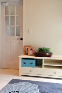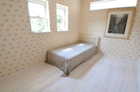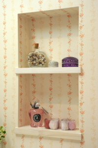 ホワイトと上品なピンクをベースに、大好きな作家の絵が引立つ様に絵の配置を考えてプランニングし、日々の至福の空間を演出しました。