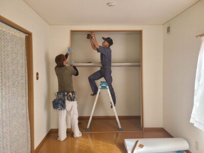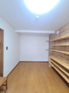 | 寝室クローゼット解体 | 寝室壁一面に可動棚設置 |