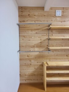 娘さんも大きくなり手狭になってきたので壁面やデッドスペースを利用して収納棚を設けたいとの要望。