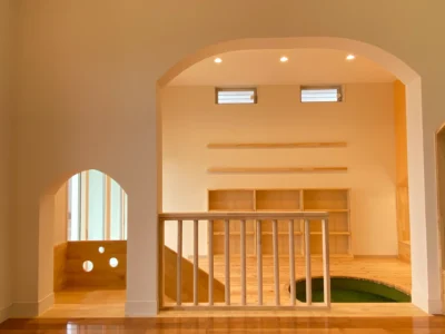 お子さまが床に寝っ転がって本を読んだり、本読みコーナーで親御さんと一緒に楽しめる開放感たっぷりの空間に仕上げました。