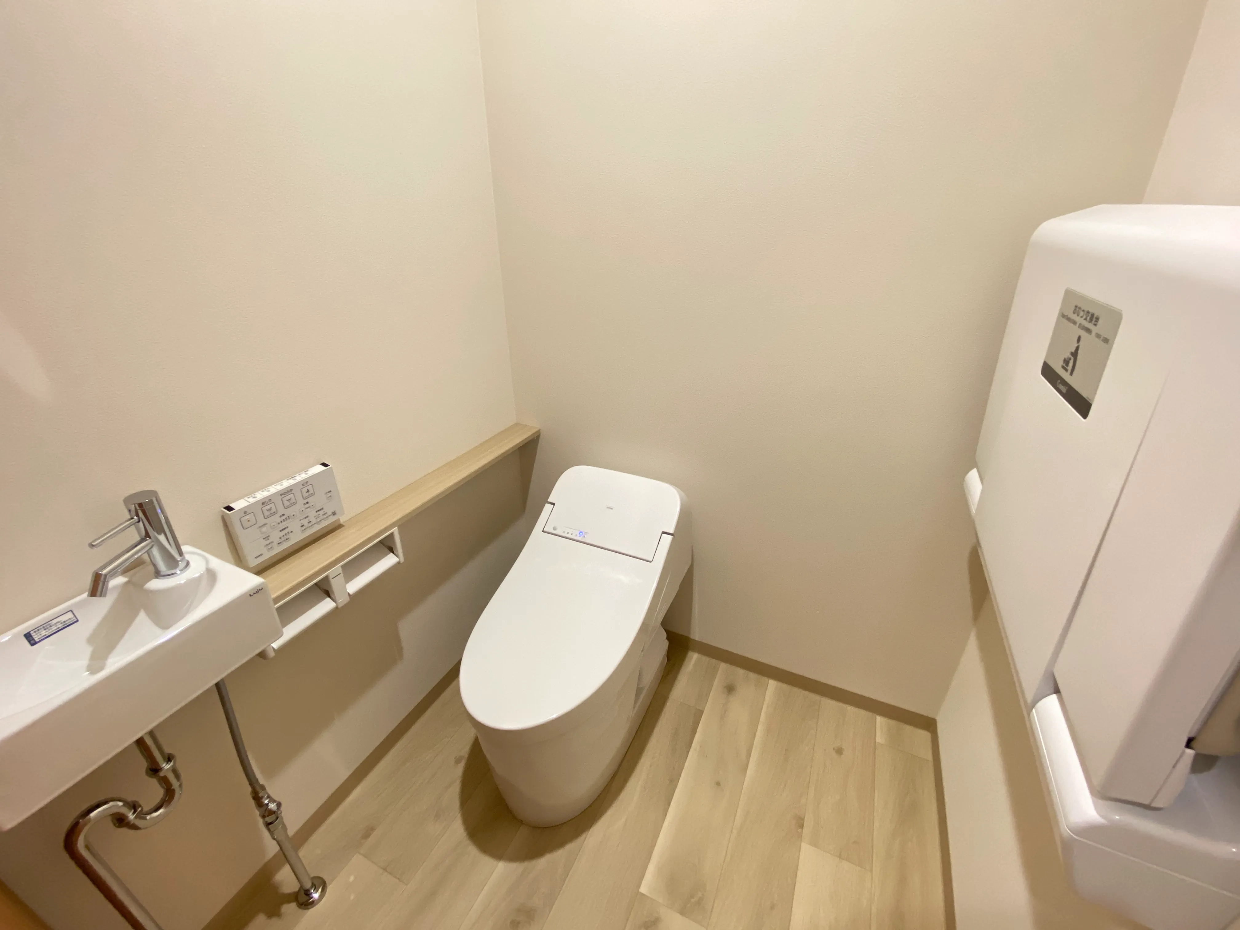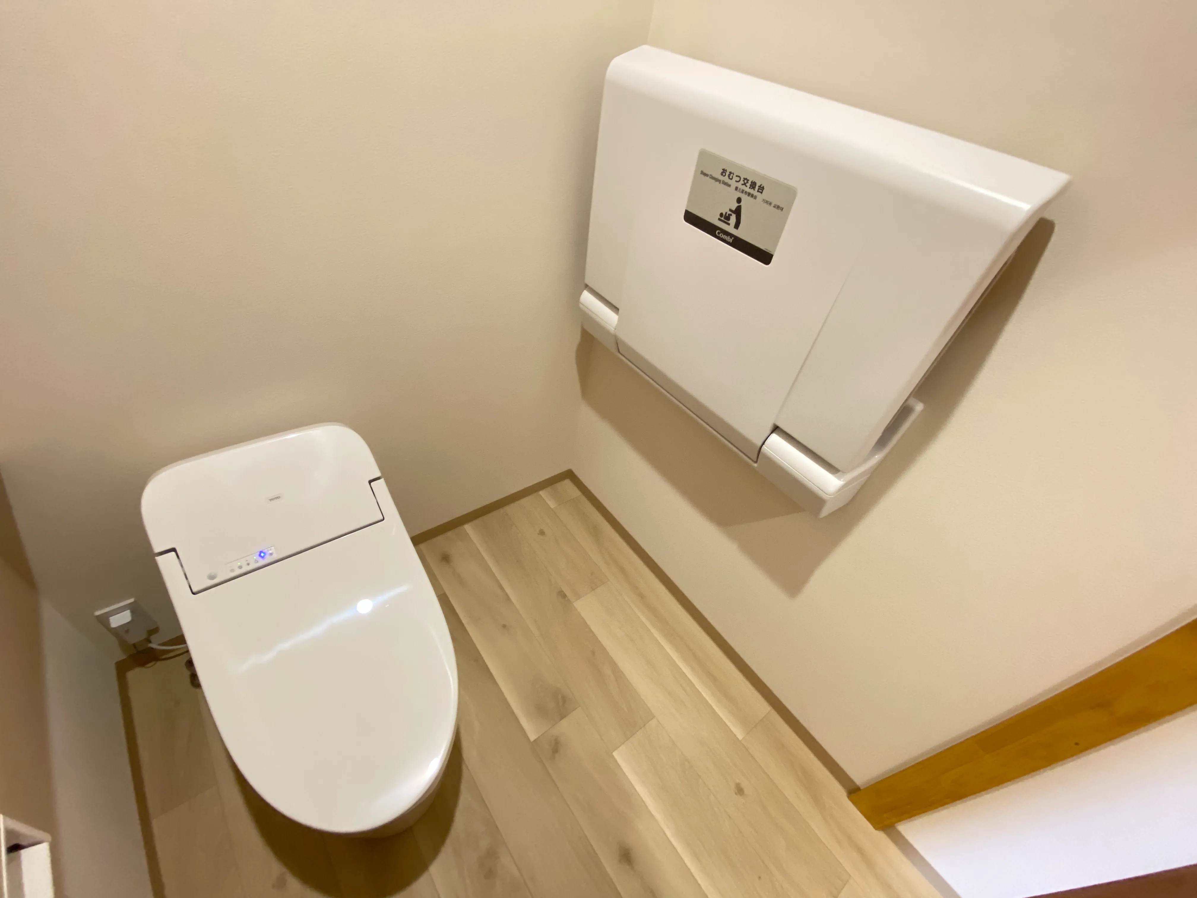 リビングの収納スペースは、赤ちゃん連れのお客様にも嬉しい「おむつ交換台付きトイレ」へ。