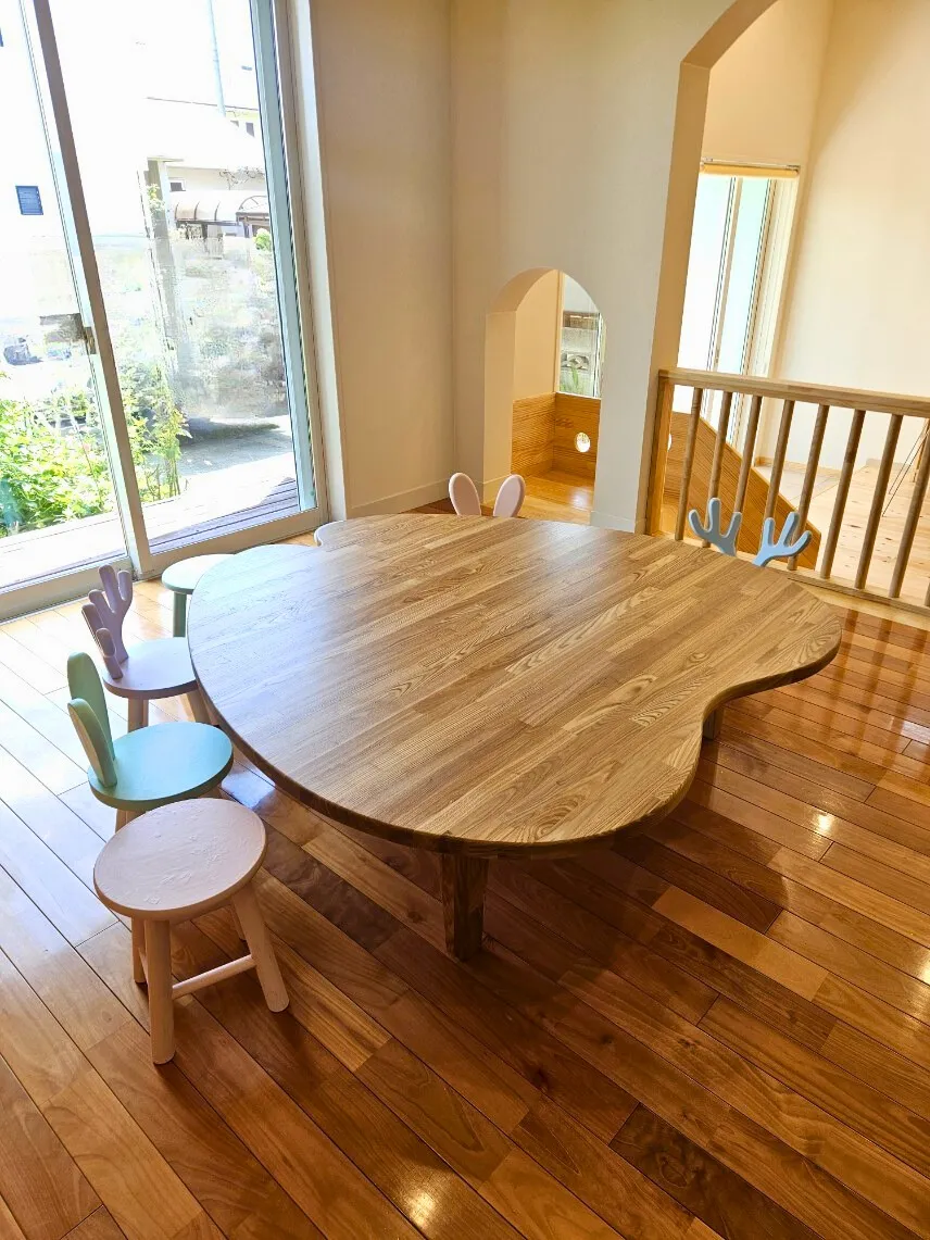 あたたかな木のぬくもりが感じられるテーブルは、遊び心と機能性を兼ね備えたこだわりの逸品です。