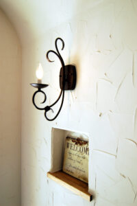 生活の中心となる1階をメインに、全体を「シャビーシック」スタイルに統一。壁は塗り壁仕上げ、建具はネイビーブルーやアイアンであしらうなど、お施主様の理想をカタチにしました。