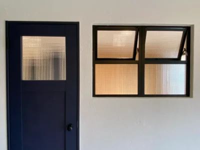 昭和に建てられたお家をインナースケルトンリフォームで、焼肉店舗付きの住まいへ。1階の6畳2間の和室は仕切りの壁を撤去して、焼肉店舗(飲食ブース&厨房ブース)へフルリノベーション。限られた空間の中で店舗スペースと住宅スペースをしっかり分けるために、玄関やトイレを別々に設置しました。