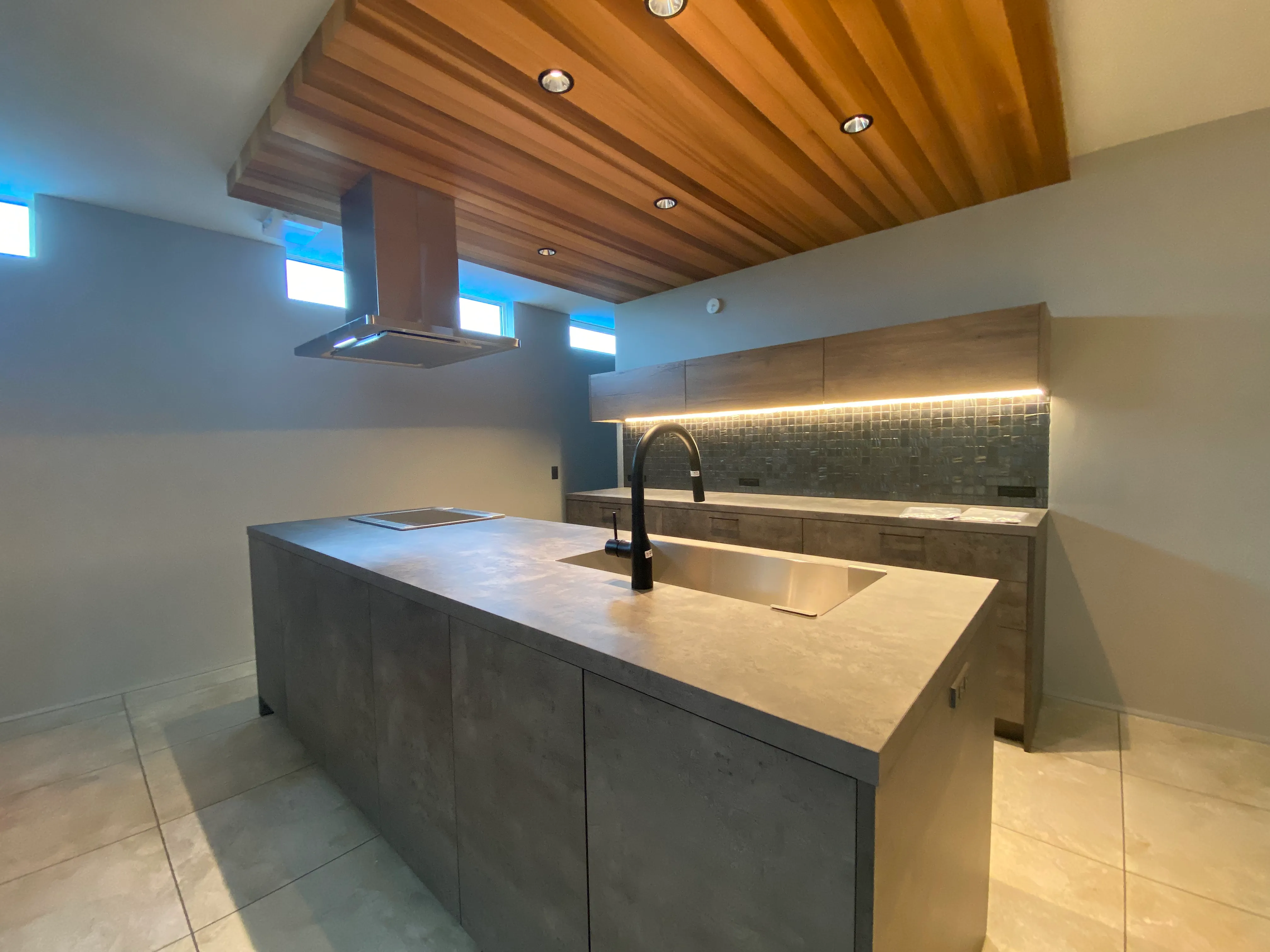 バスルーム・洗面脱衣所・キッチン水回りを中心に、フルリノベーション。キッチンはお施主様のお好きなカラーデザインで統一し、毎日のお料理を楽しんでいただけるよう、造作収納棚もお作りいたしました。