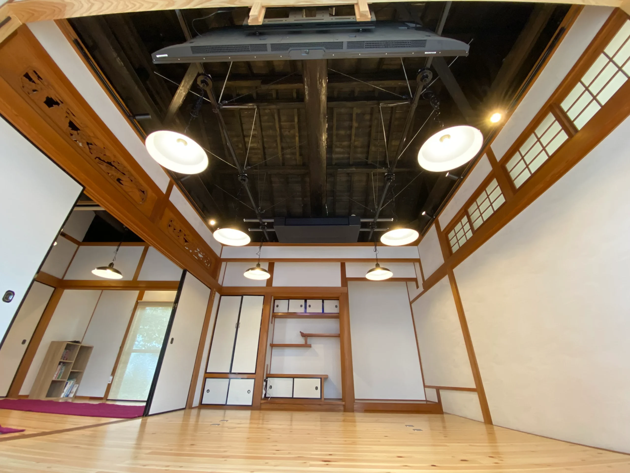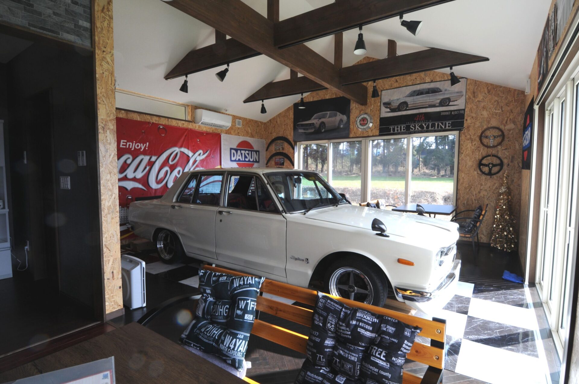 築40年の店舗兼住宅を愛車ガレージにフルリノベーション。旧店舗部分は内壁や天井をすべてはがし、インナースケルトンリフォームで電気設備施工、補強工事など実施し、愛車ガレージに改造。
