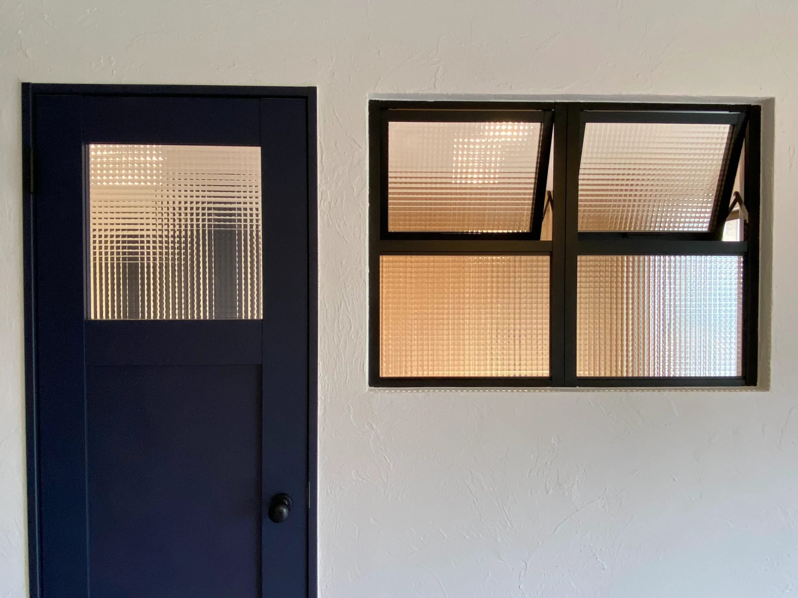 生活の中心となる1階をメインに、全体を「シャビーシック」スタイルに統一。壁は塗り壁仕上げ、建具はネイビーブルーやアイアンであしらうなど、お施主様の理想をカタチにしました。